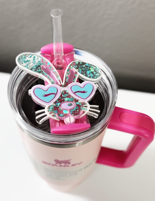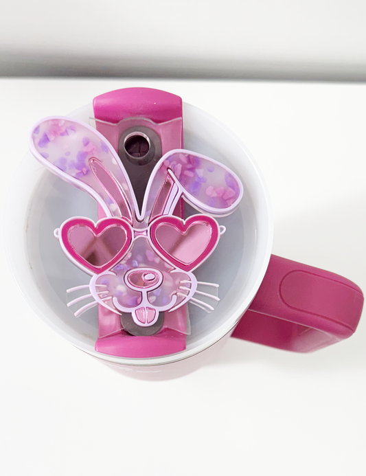 TUMBLER TOPPER - BUNNY GLASSES-PINK TEAL PURPLE
