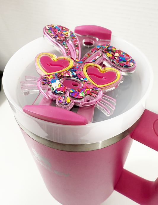 TUMBLER TOPPER - BUNNY GLASSES-PINK UNICORN GLITTER