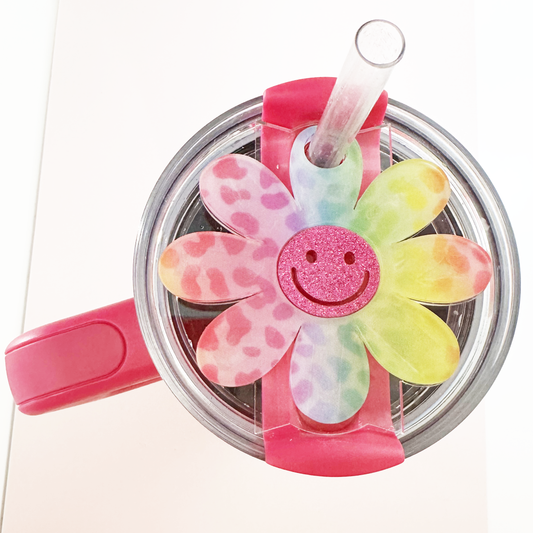 TUMBLER TOPPER TAG - RAINBOW CHEETAH SMILEY FLOWER