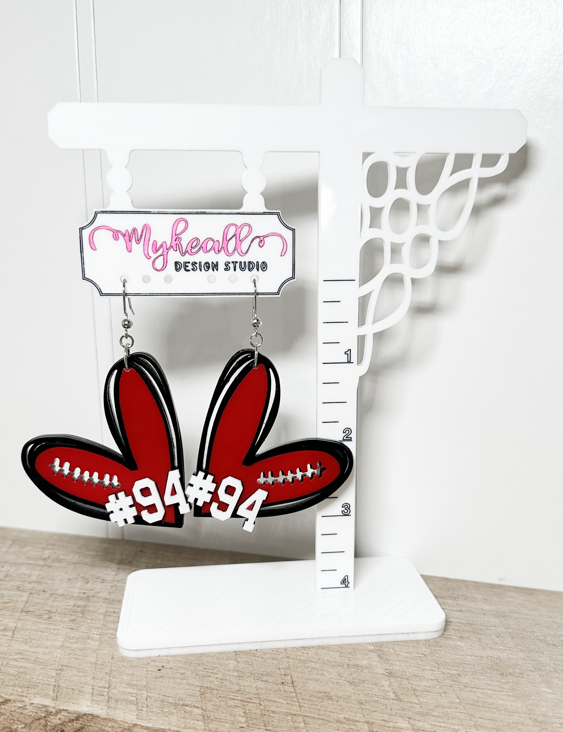 CUSTOM - FOOTBALL HEART WITH TEAM # EARRINGS