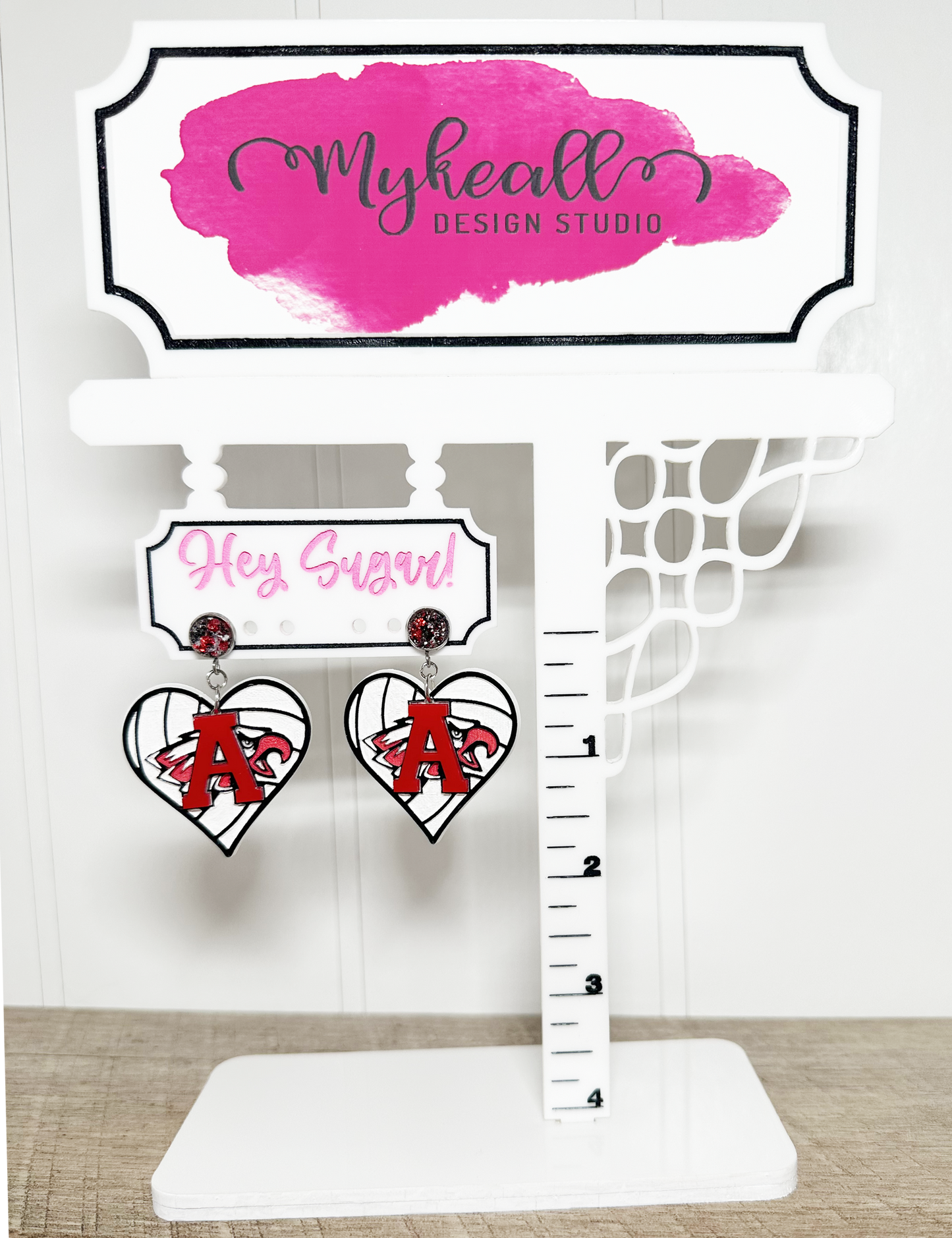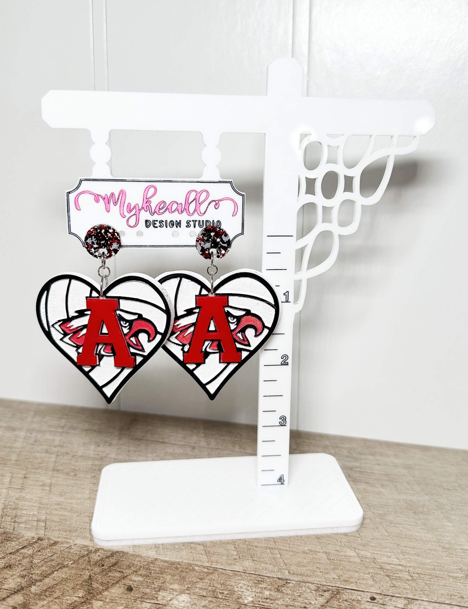 Argyle Eagles Earrings-VOLLEYBALL HEART DANGLES