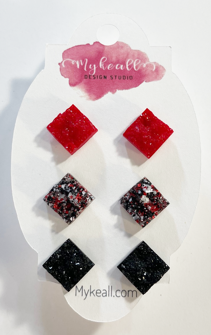 Hand-made resin earrings. Set of 3 studs. 3 pair for $5.00 less!