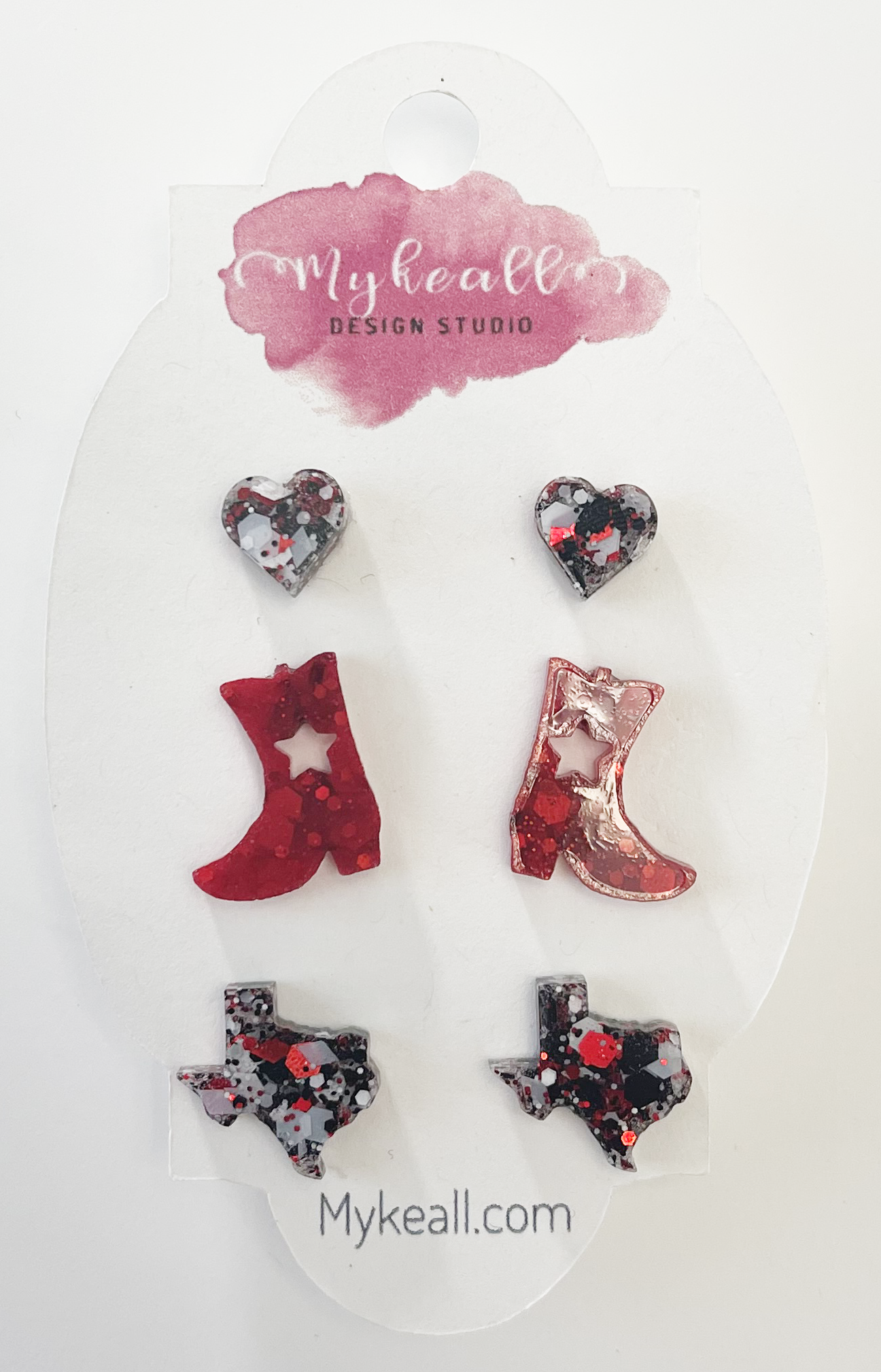 Hand-made resin earrings. Set of 3 studs. 3 pair for $5.00 less!