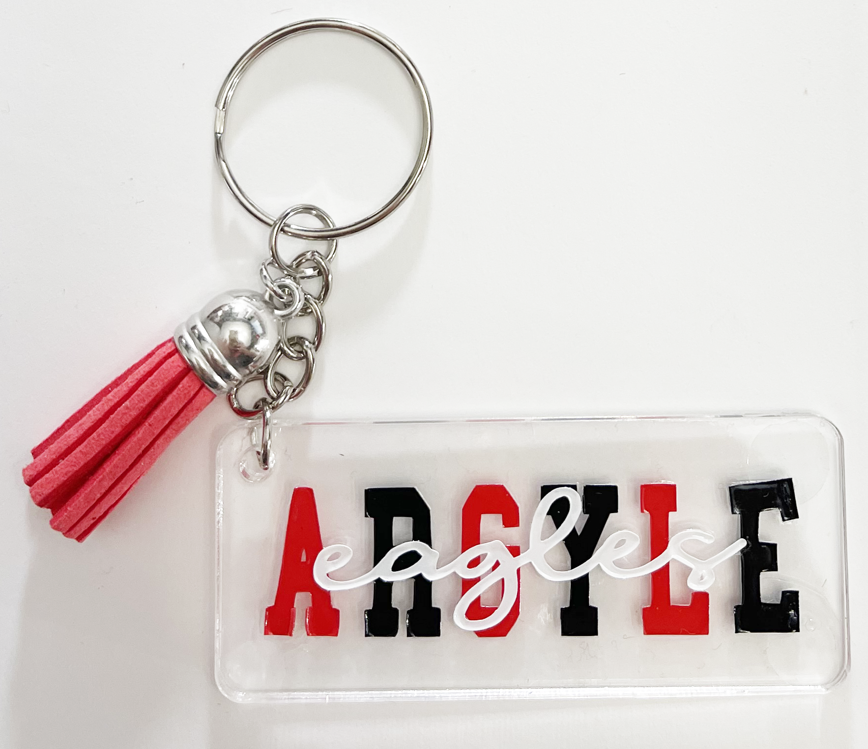 Acrylic key fob/zipper pull.