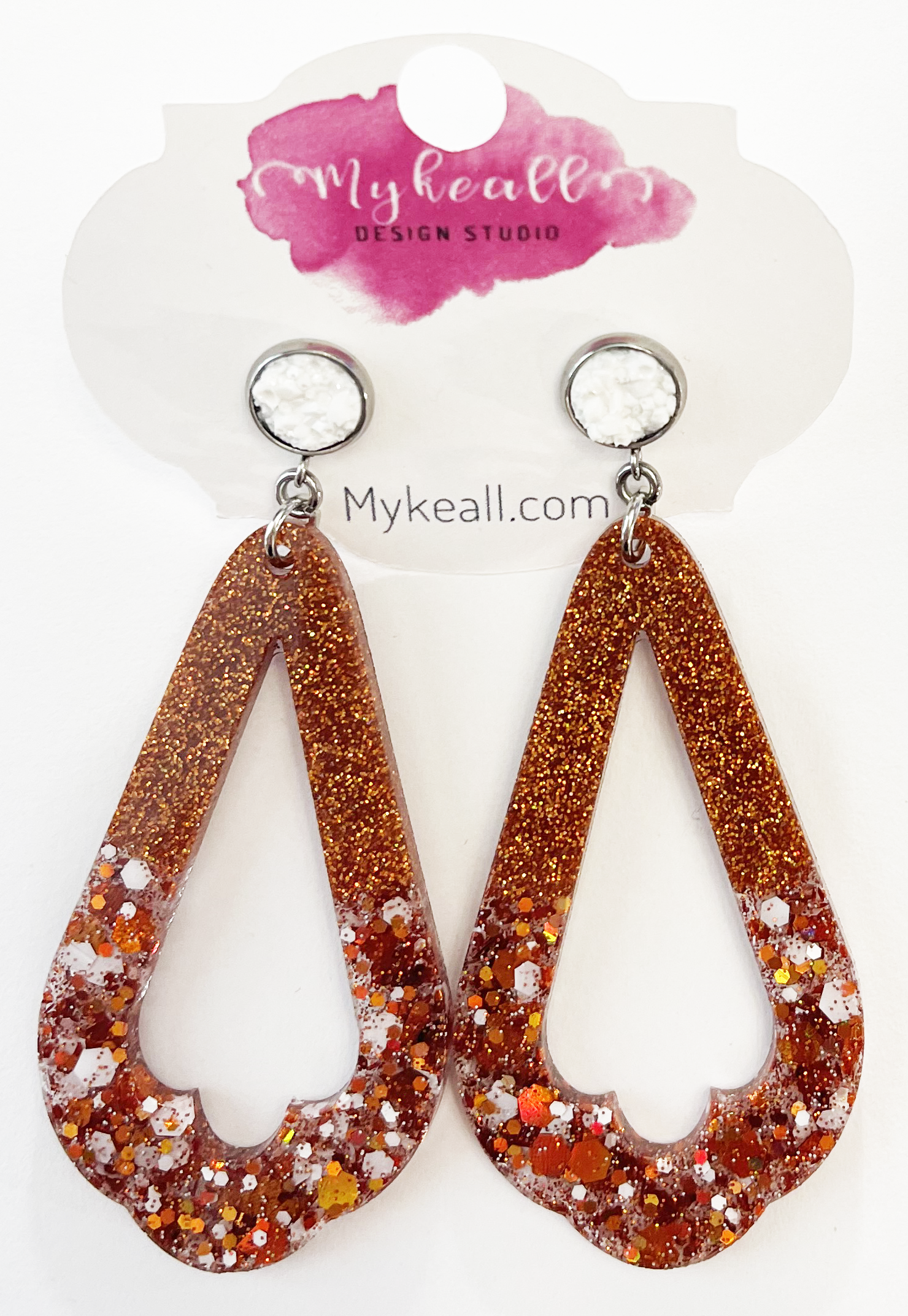 Burnt orange glitter earrings with white druzy post - 2.0" length