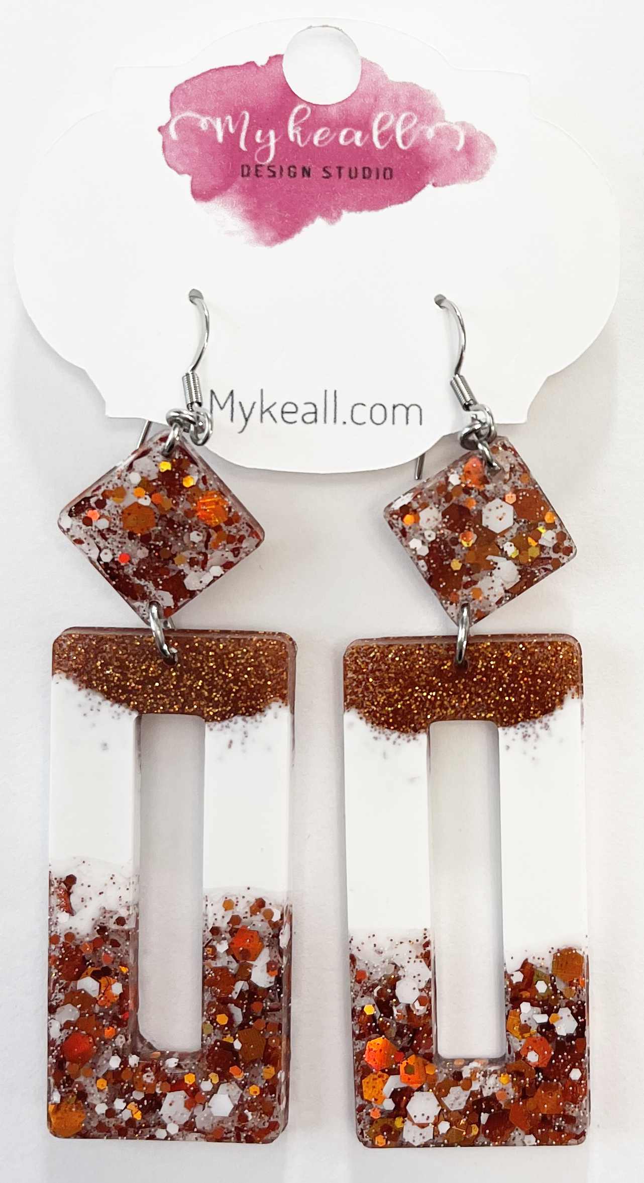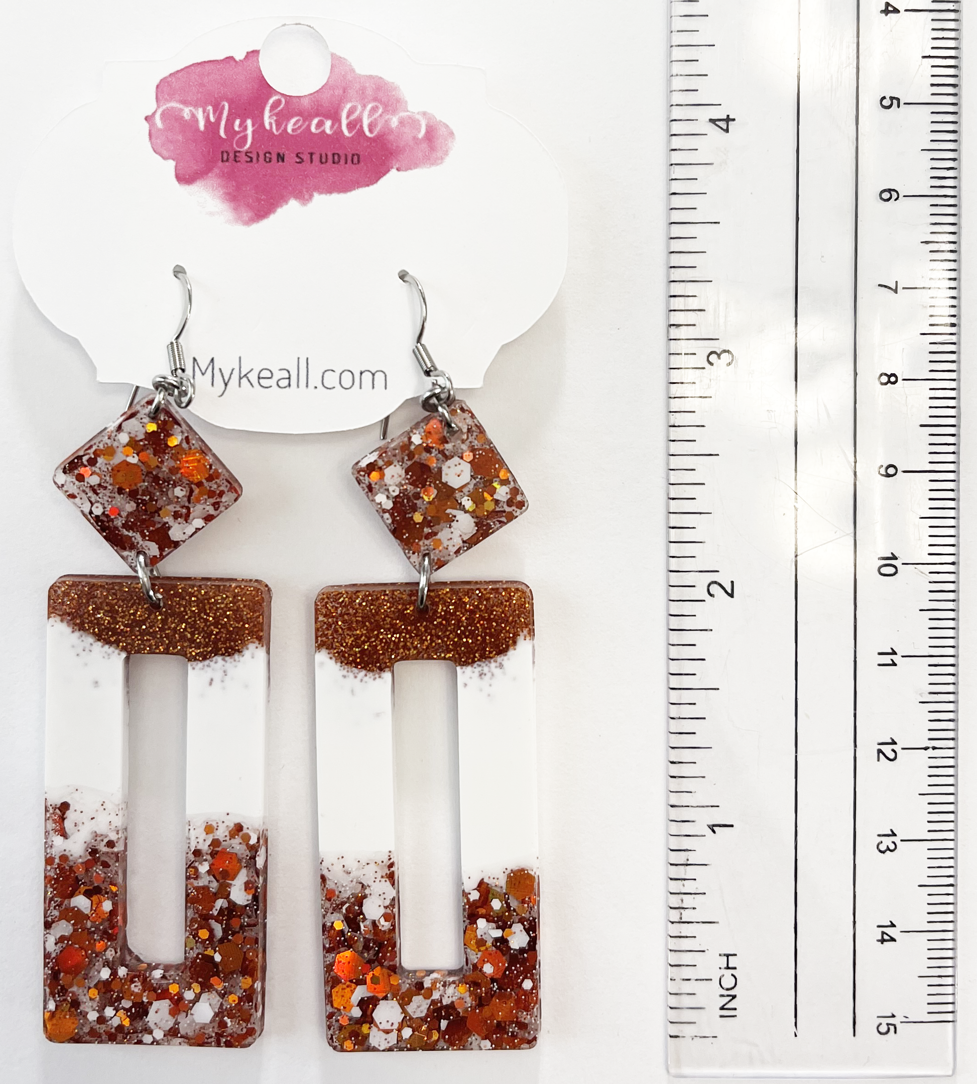 Burnt orange glitter earrings - 2.5" length