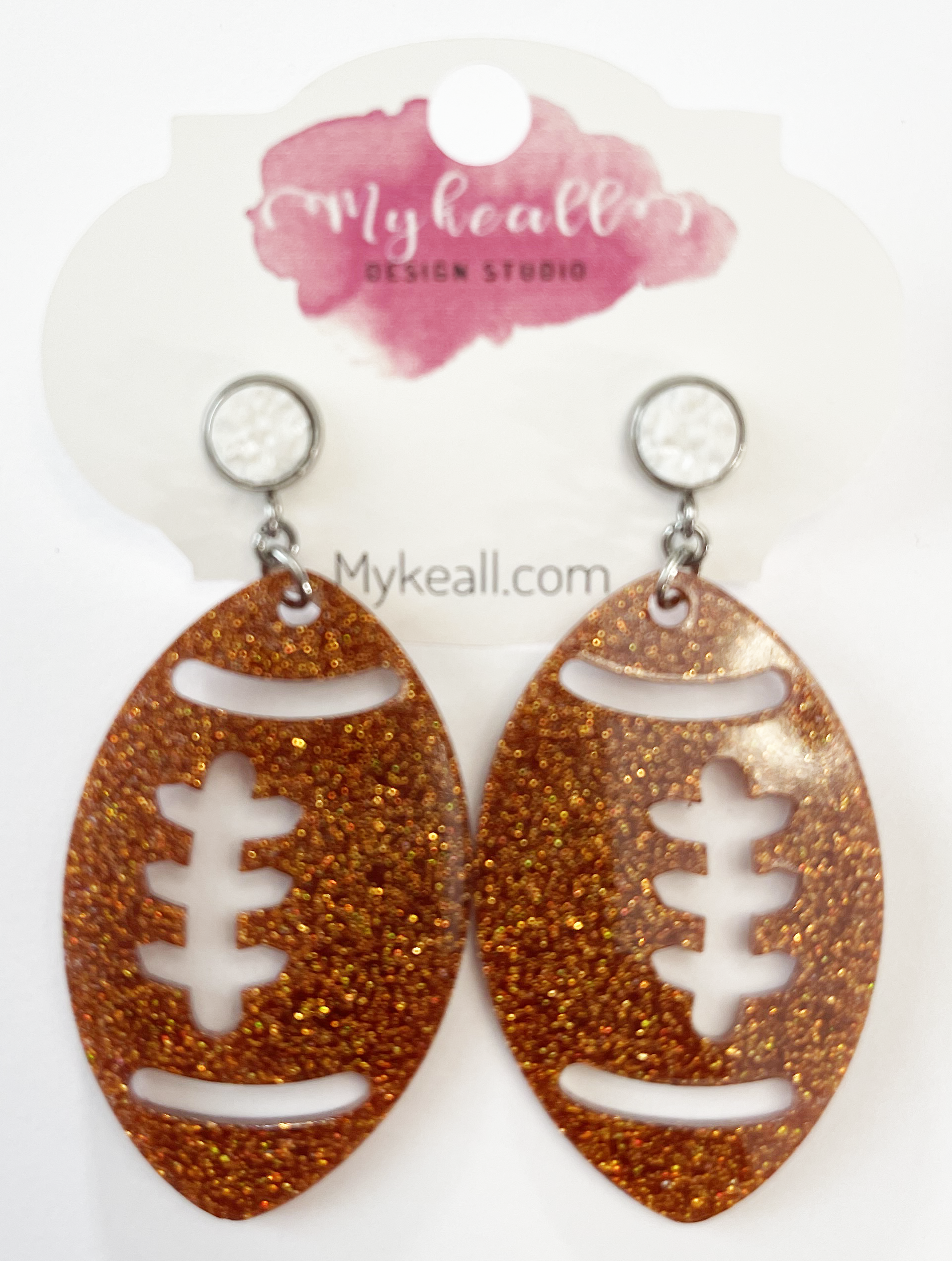 Burnt orange football earrings with white druzy post - 2.5" length