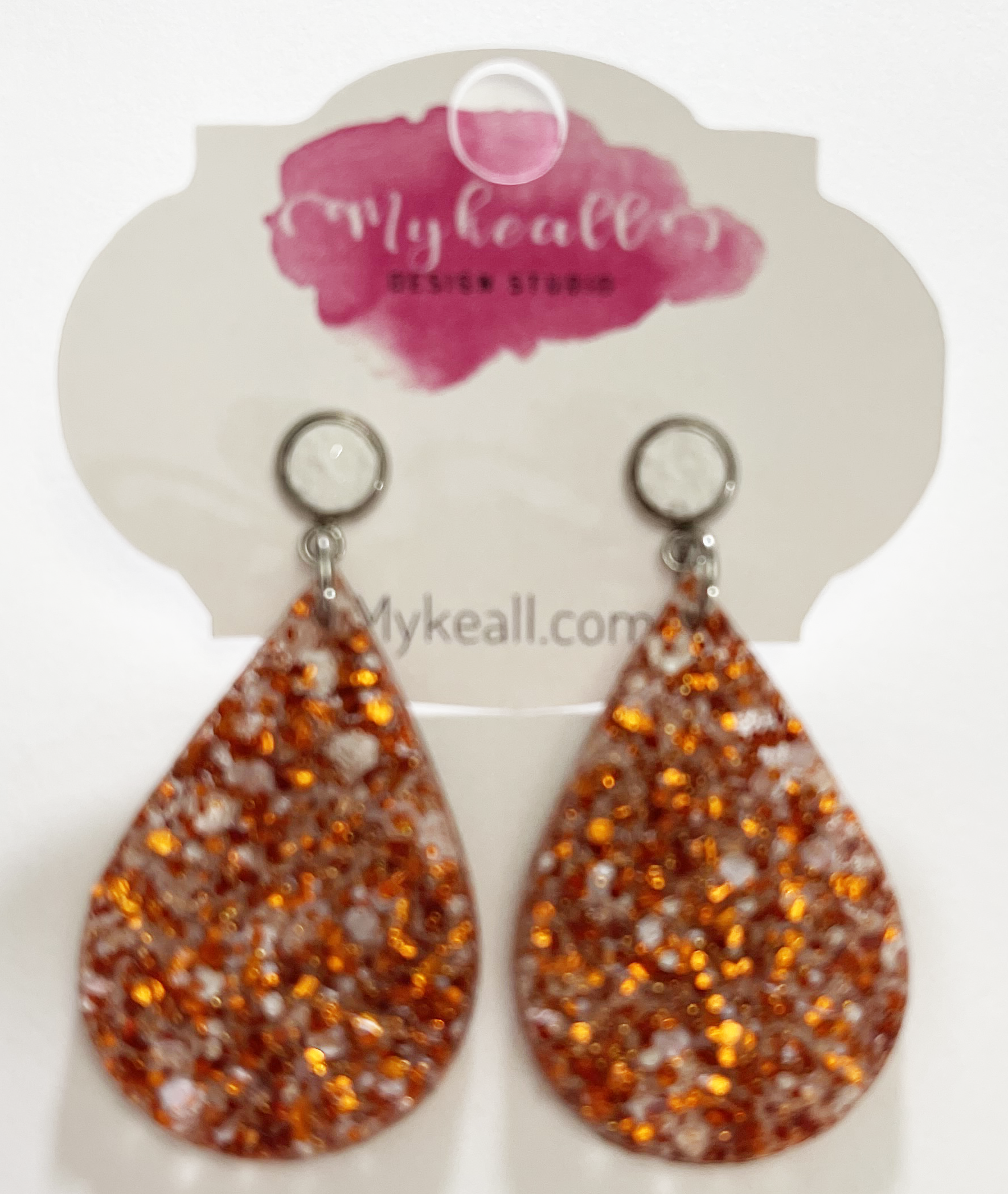 Burnt orange and white druzy tear drop earrings with white druzy post- 3.0" length