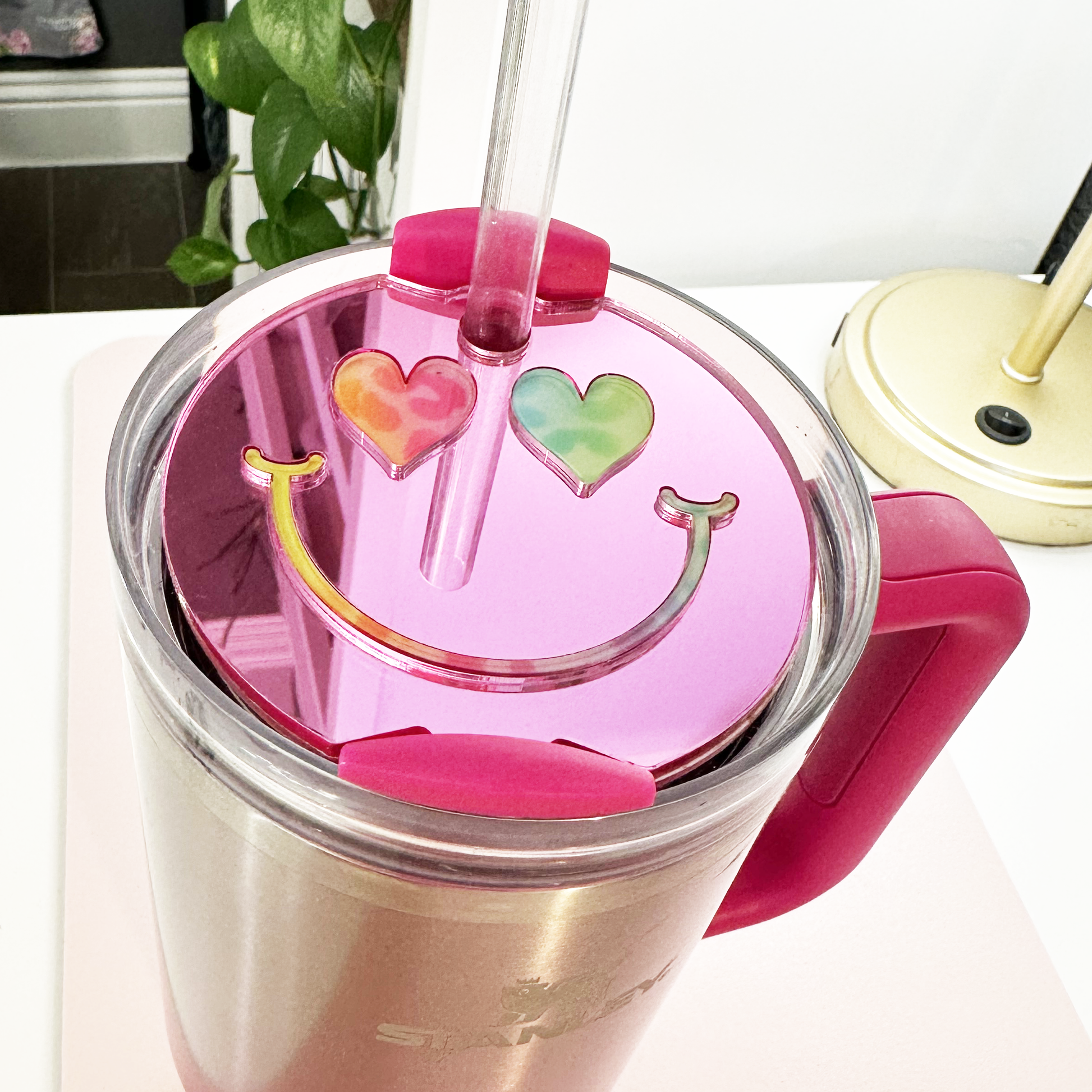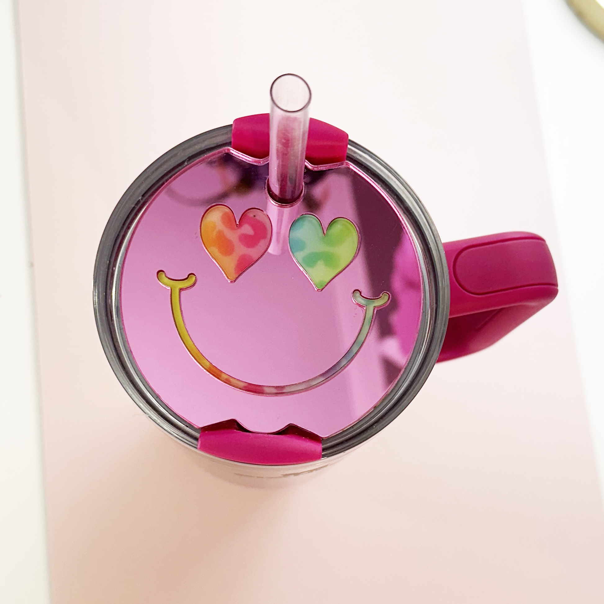 TUMBLER TOPPER - FULL LID - MIRRORED CHEETAH SMILEY