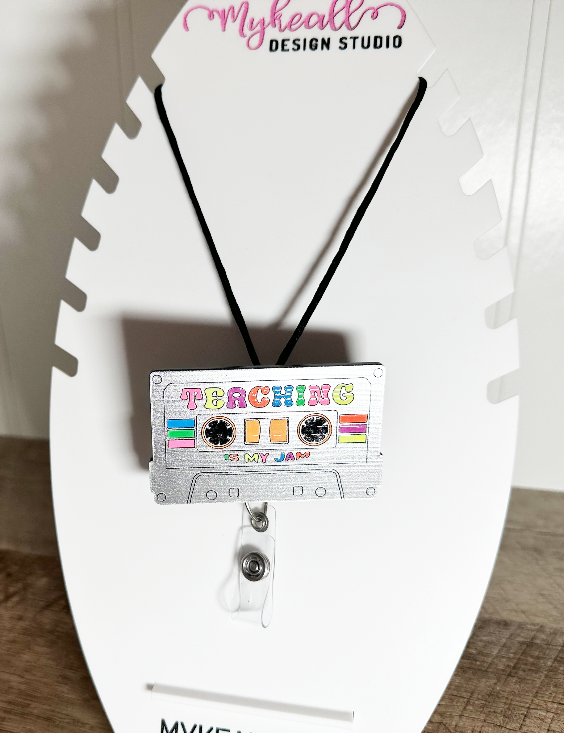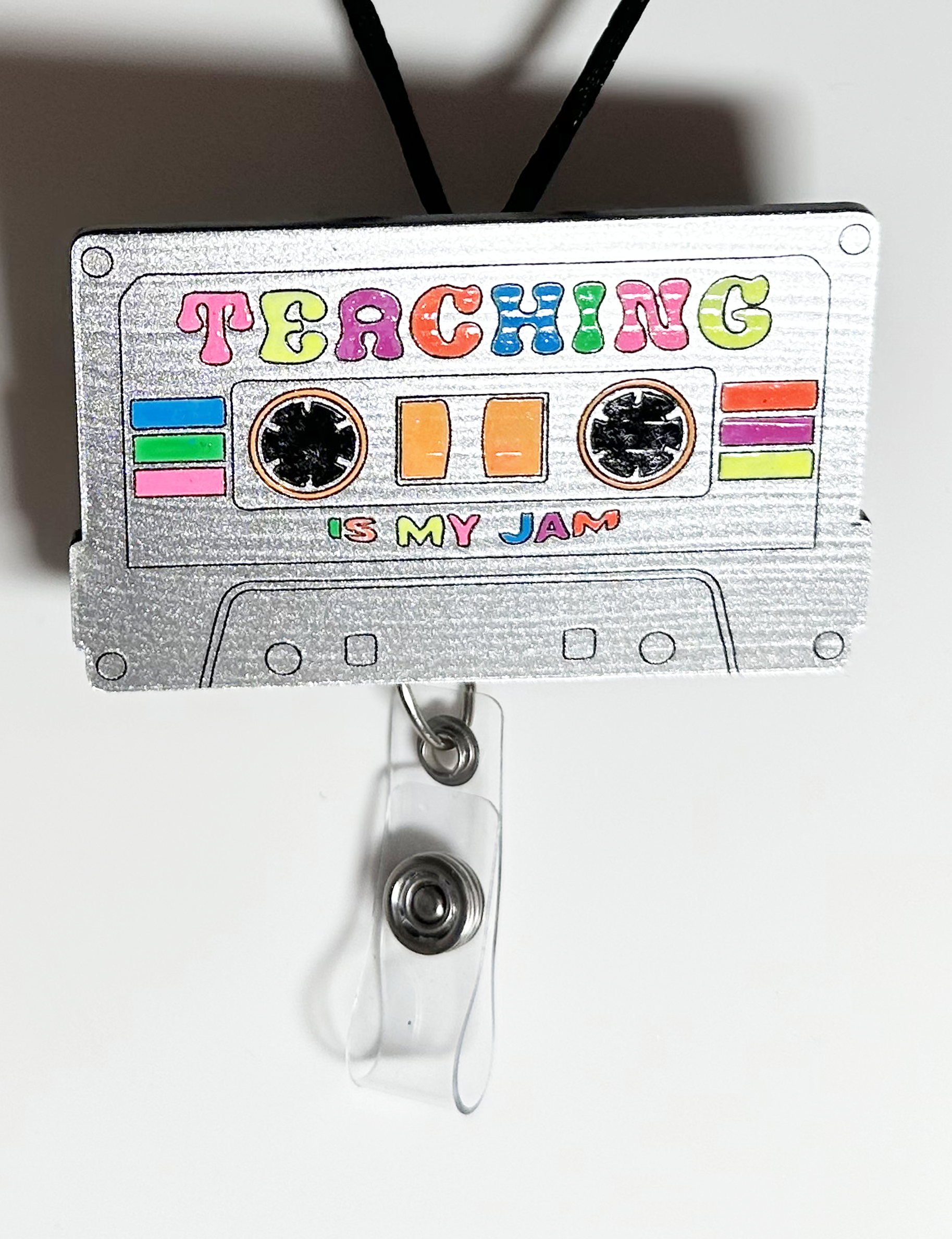 TEACHING IS MY JAM CASSETTE BADGE REEL/LANYARD