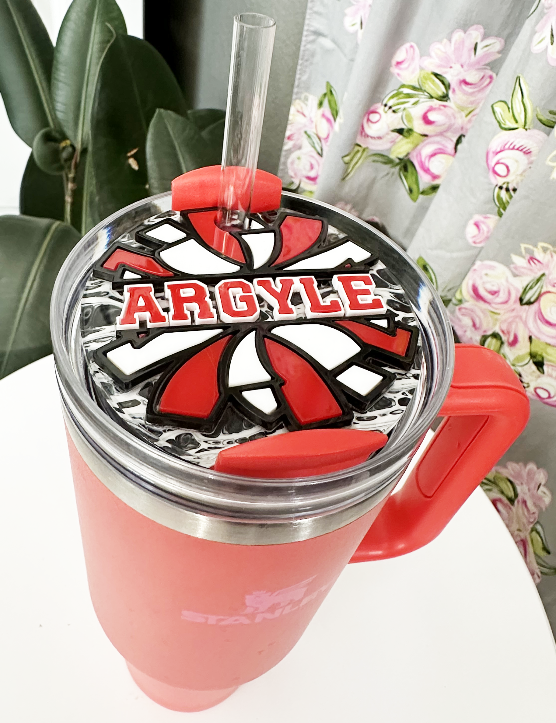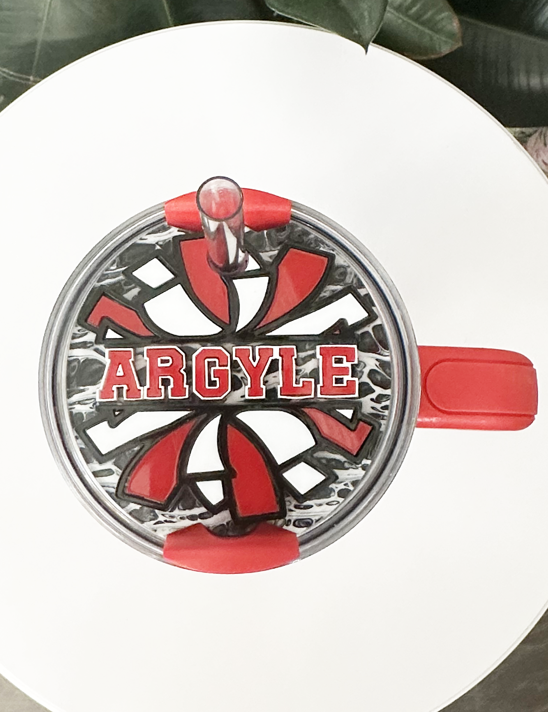 CUSTOM TUMBLER TOPPER - FULL LID - CHEER POM POM-BLK MARBLE