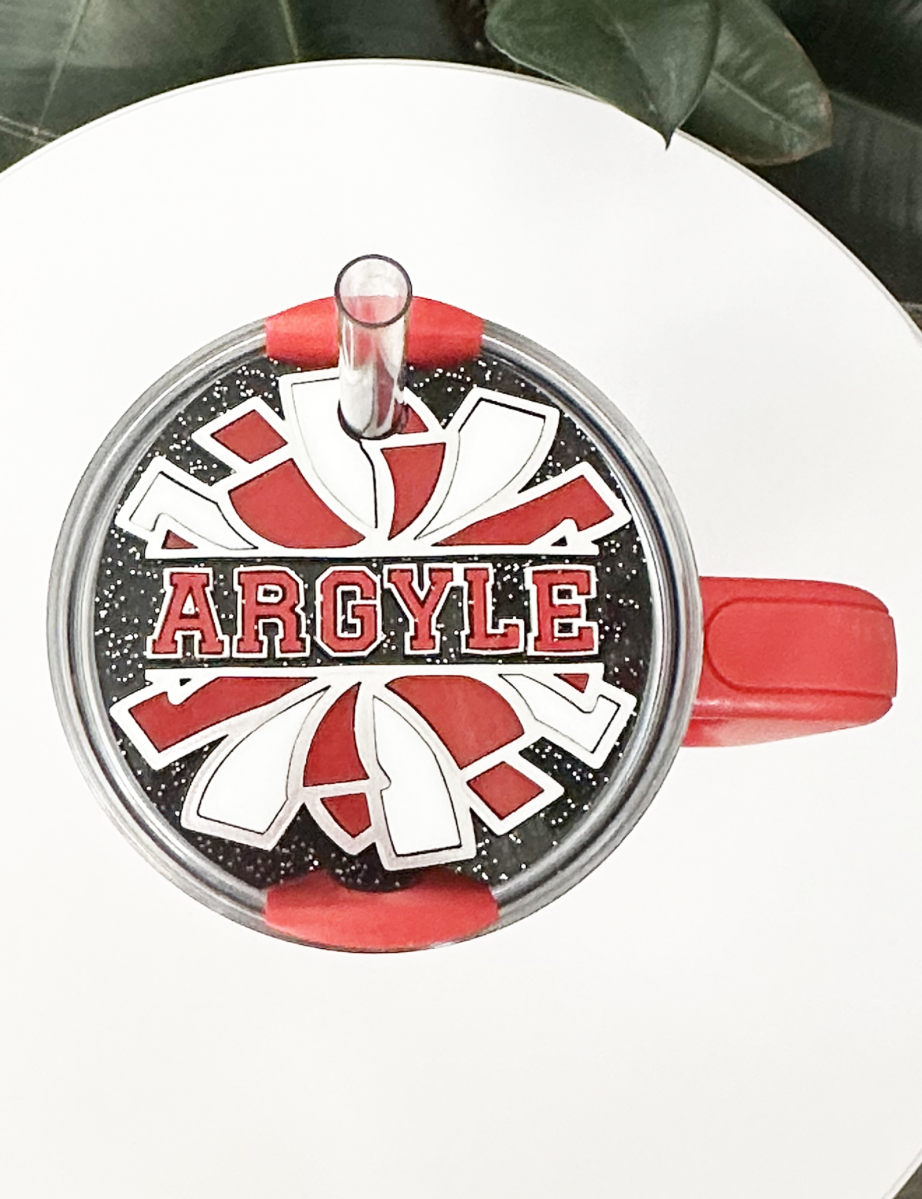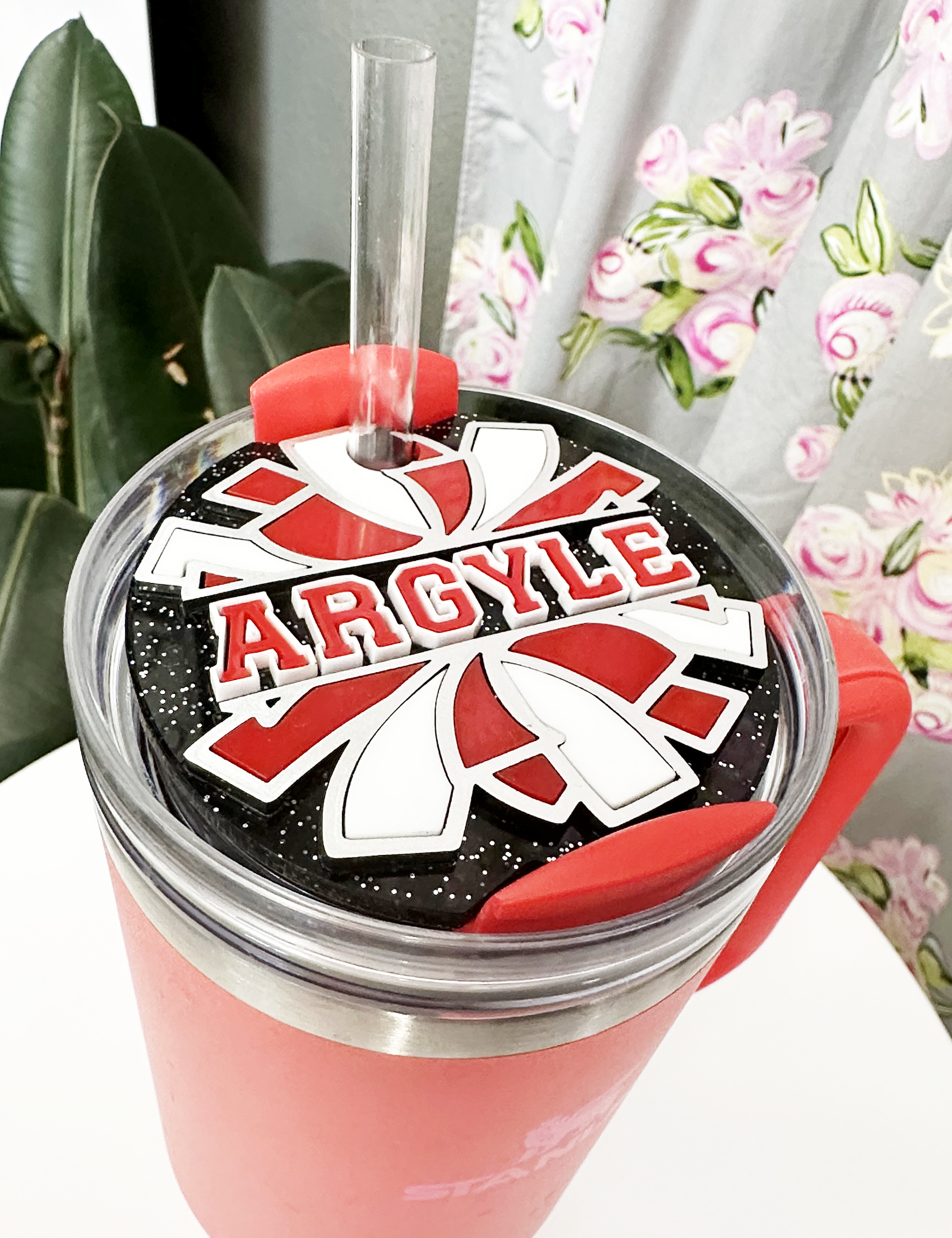 CUSTOM TUMBLER TOPPER - FULL LID - CHEER POM POM-BLK GLITTER