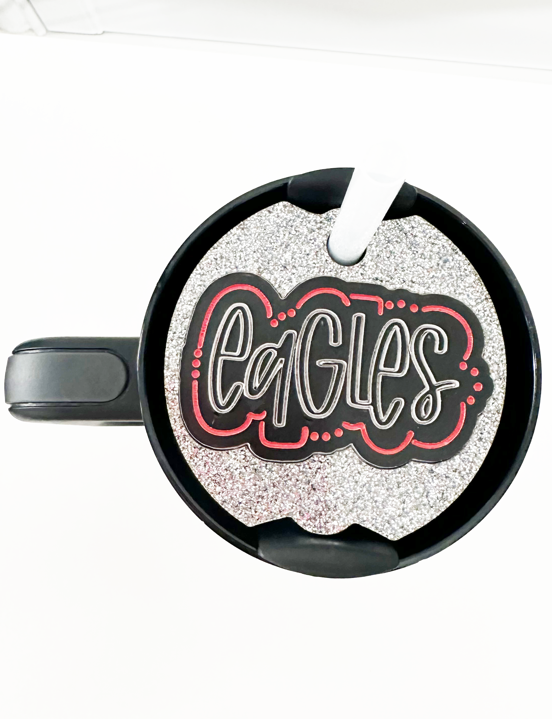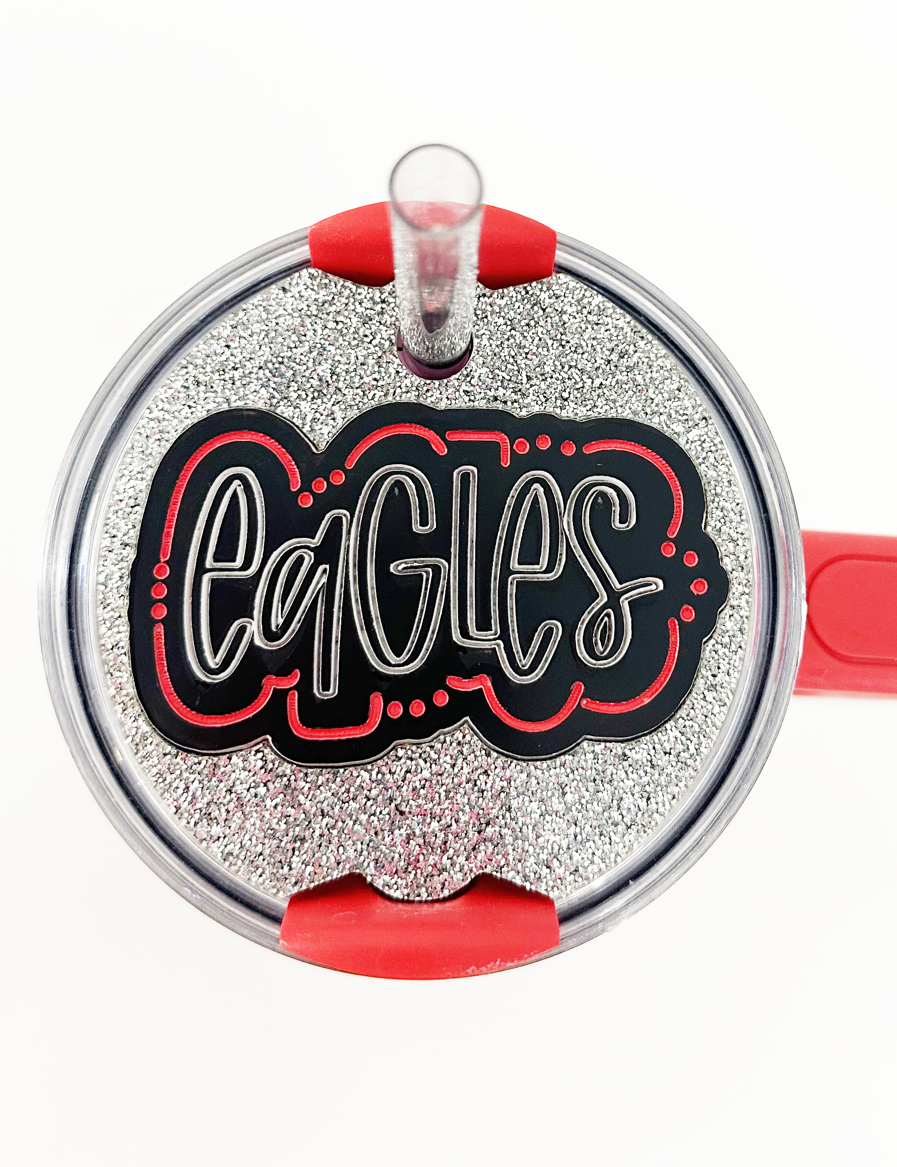 CUSTOM TUMBLER TOPPER - FULL LID - EAGLES TEAM SPIRIT-SLVR GLTR