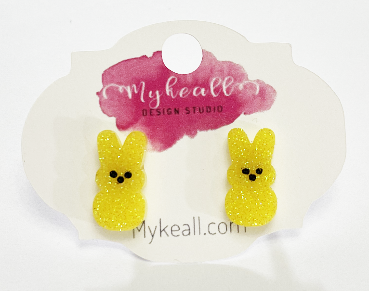 Hand-made epoxy resin earrings in a bunny (PEEPS) design!