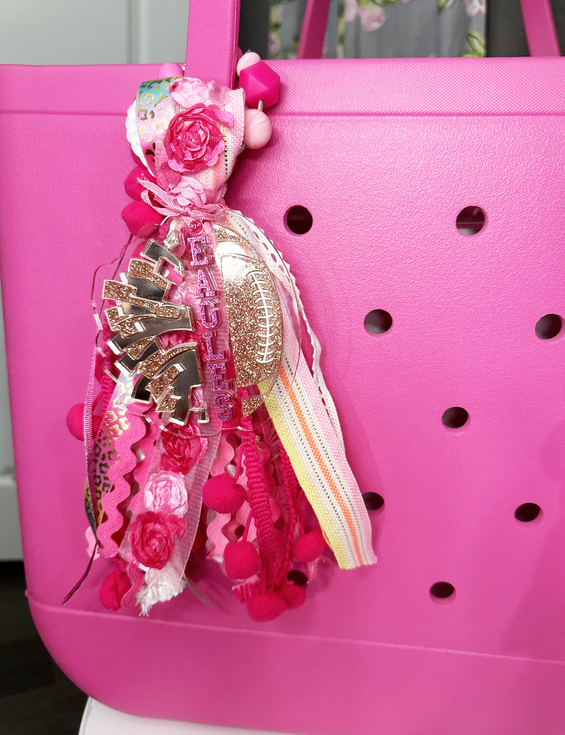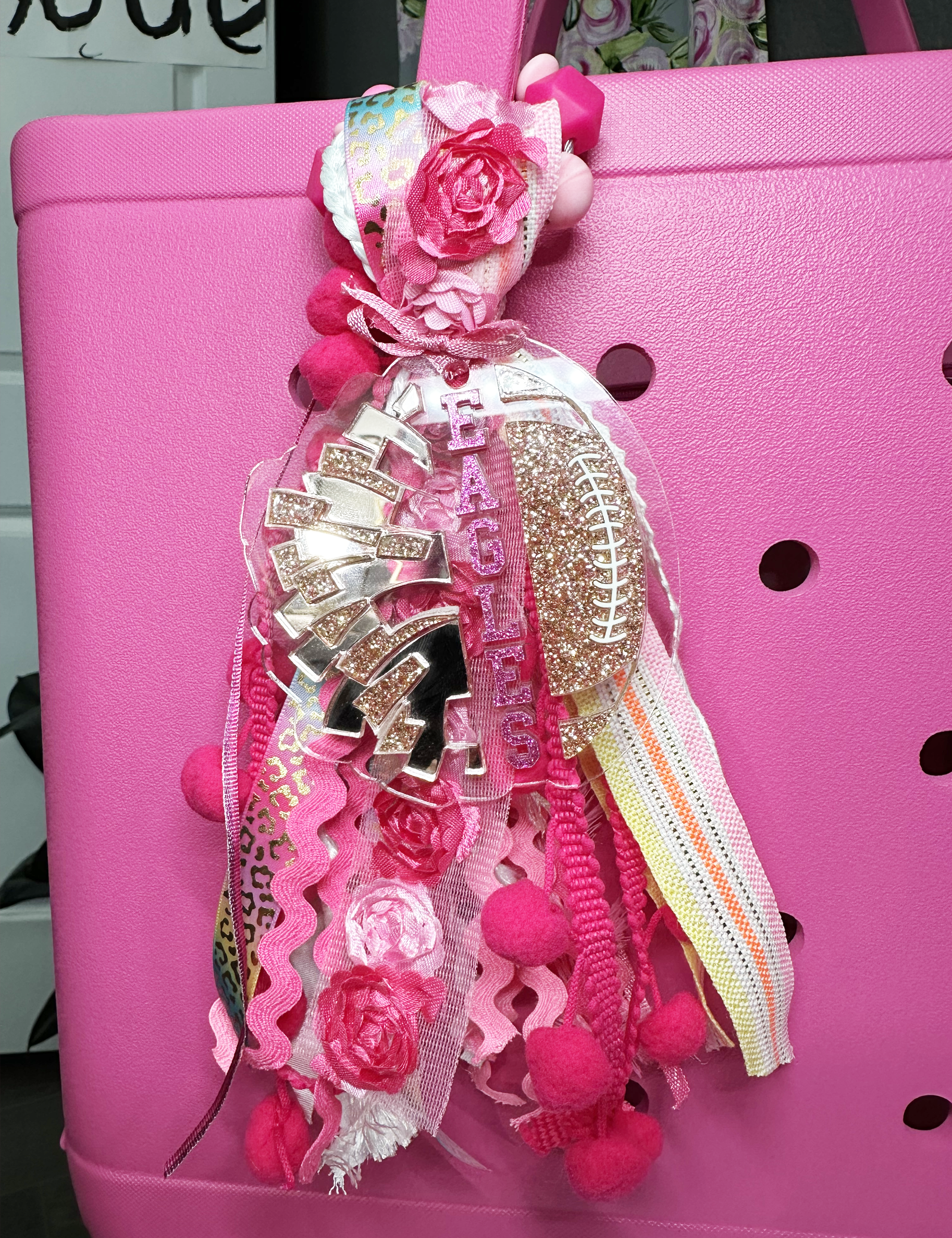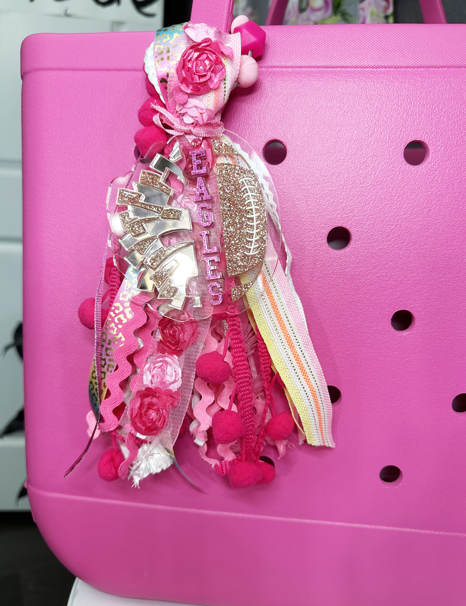 CUSTOM FOOTBALL/CHEER - BAG TAG/KEY FOB/ZIPPER PULL - ROSE GOLD