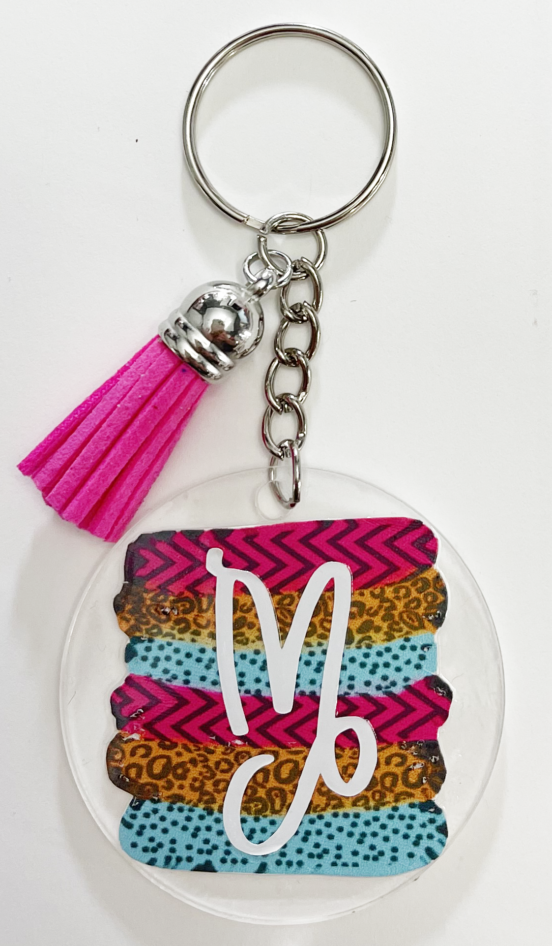 Personalized initial acrylic key fob/zipper pull.