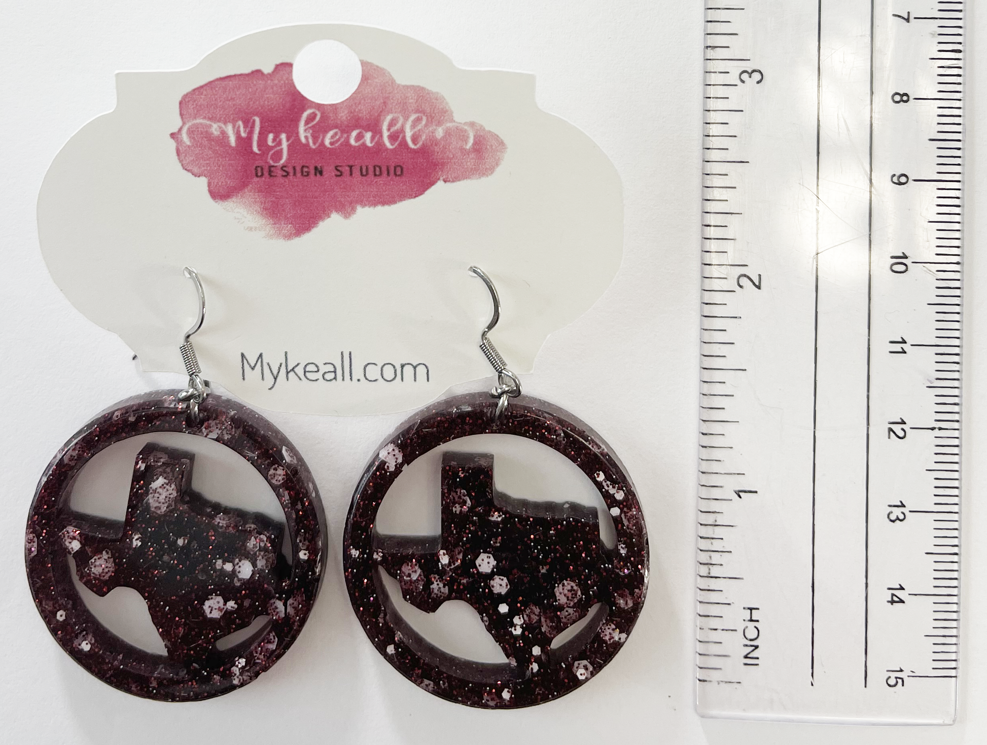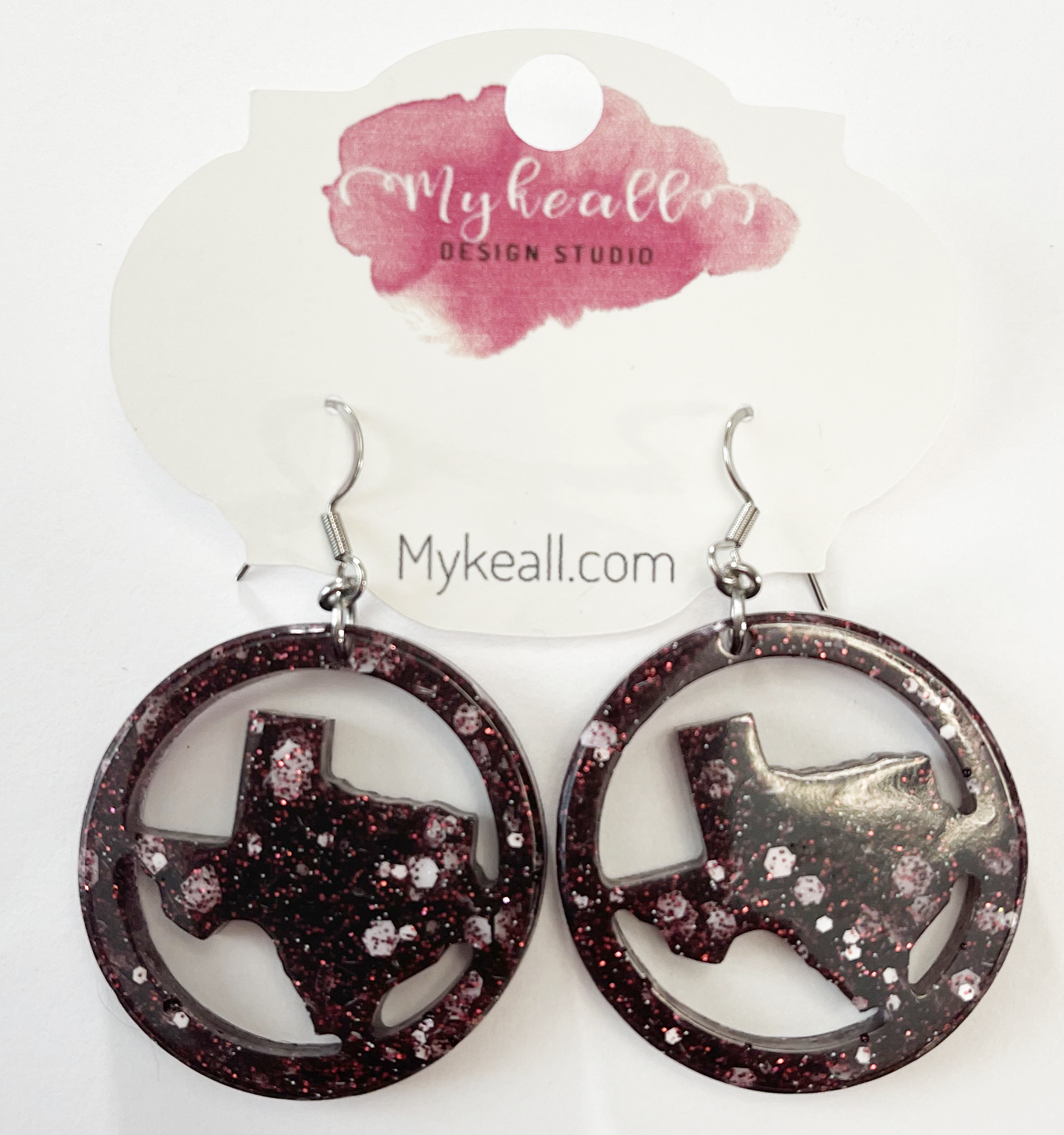 Maroon glitter Texas earrings - 2" length