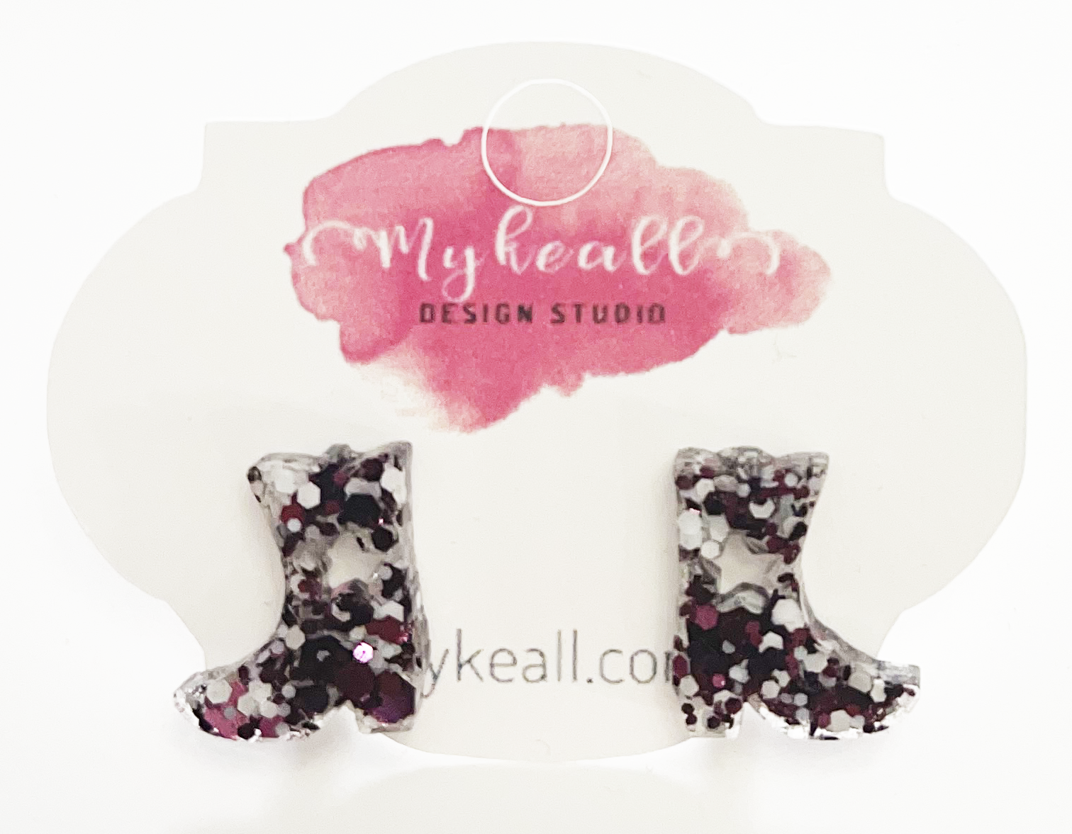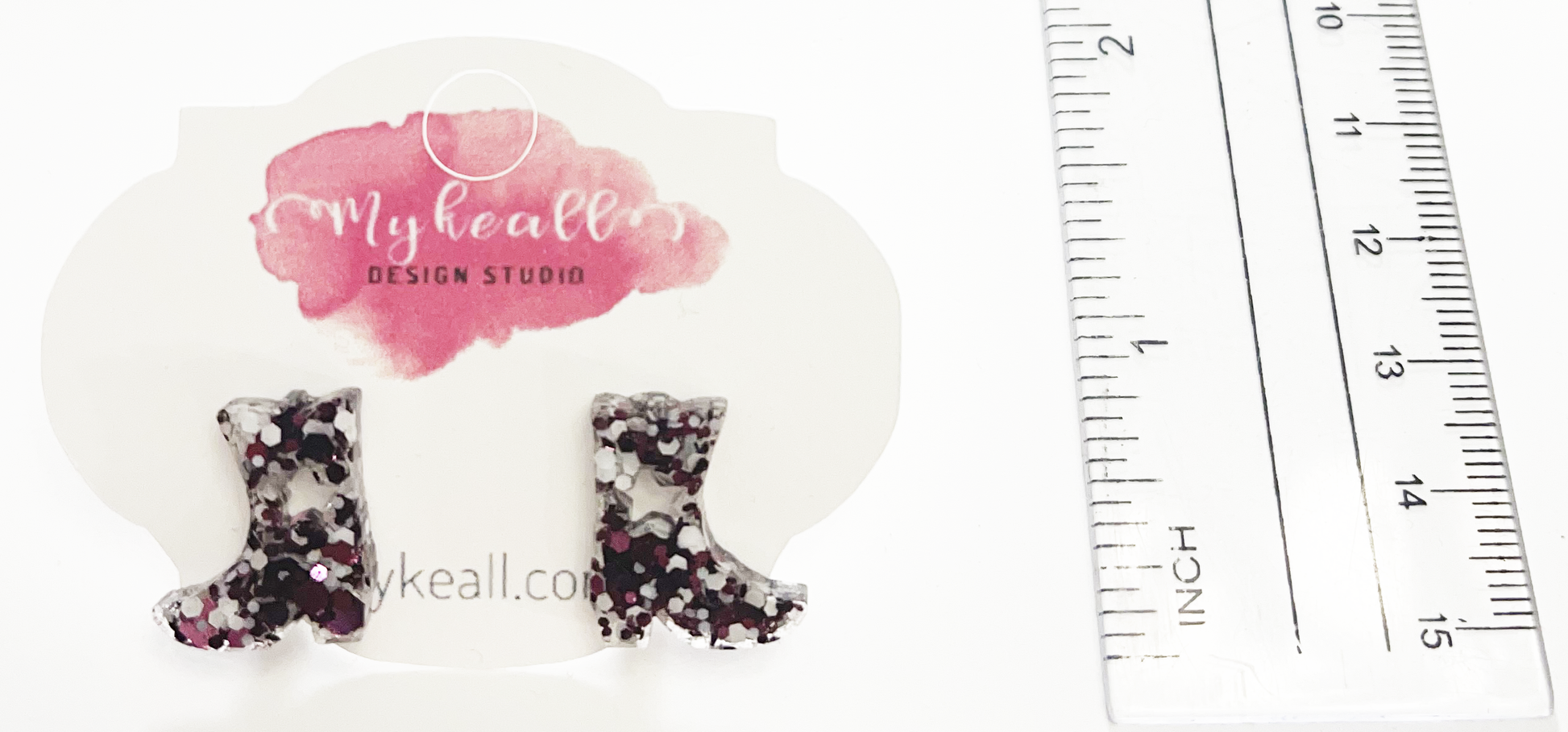 Boots stud earrings with maroon glitter mix- .6" length