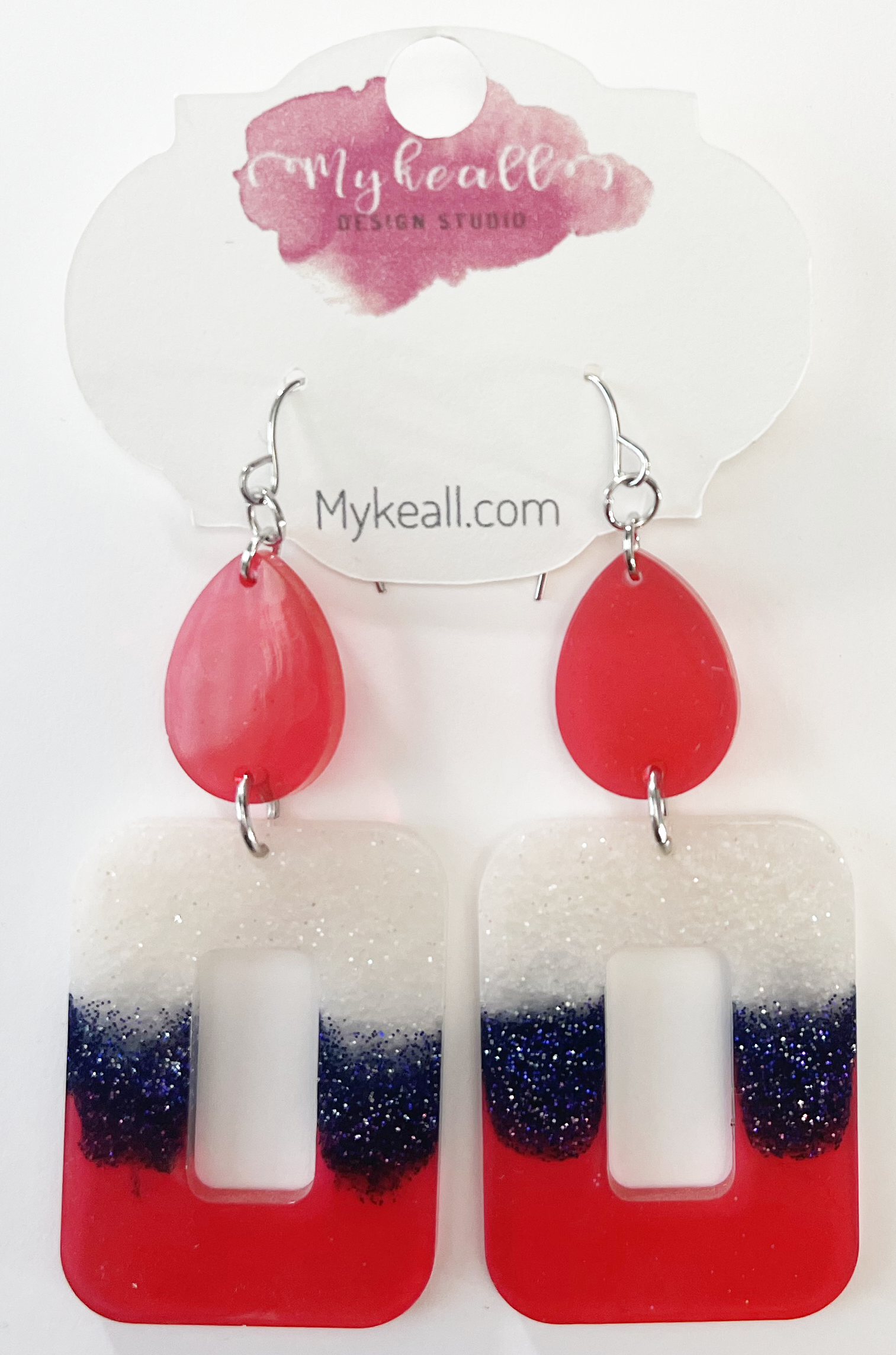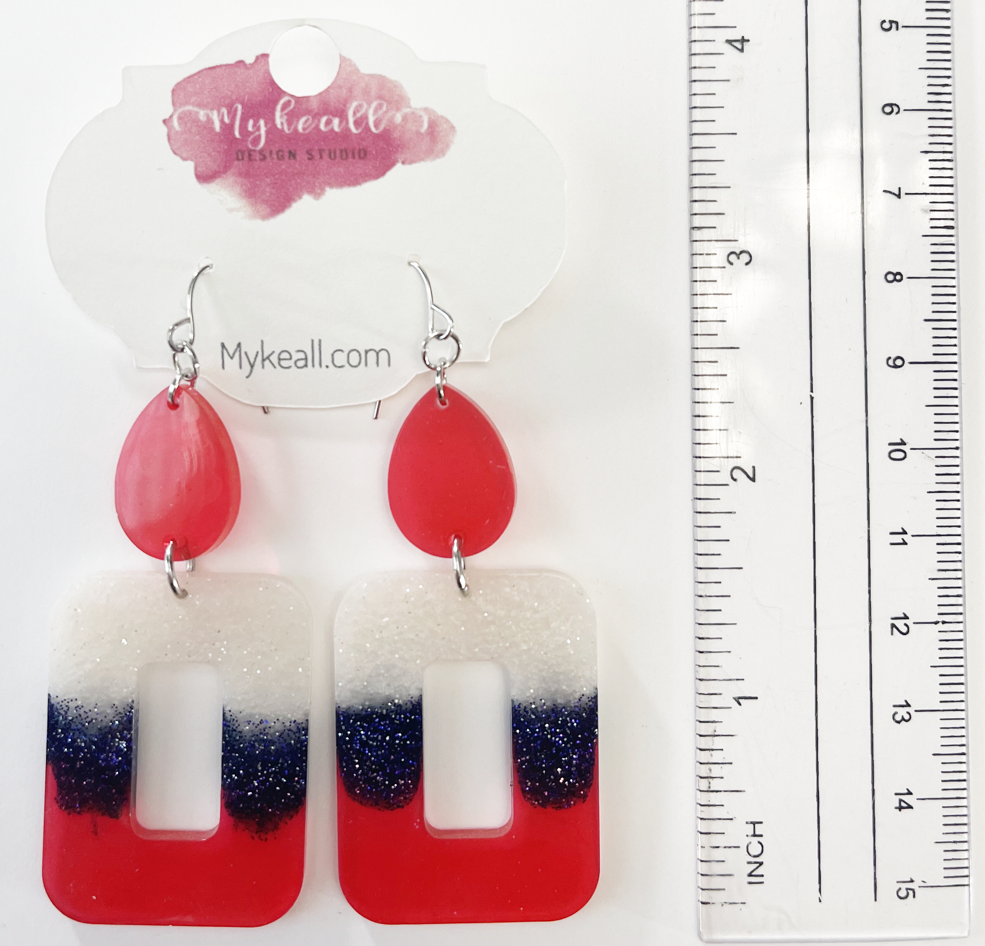Red white blue dangle earrings - 2.5" length