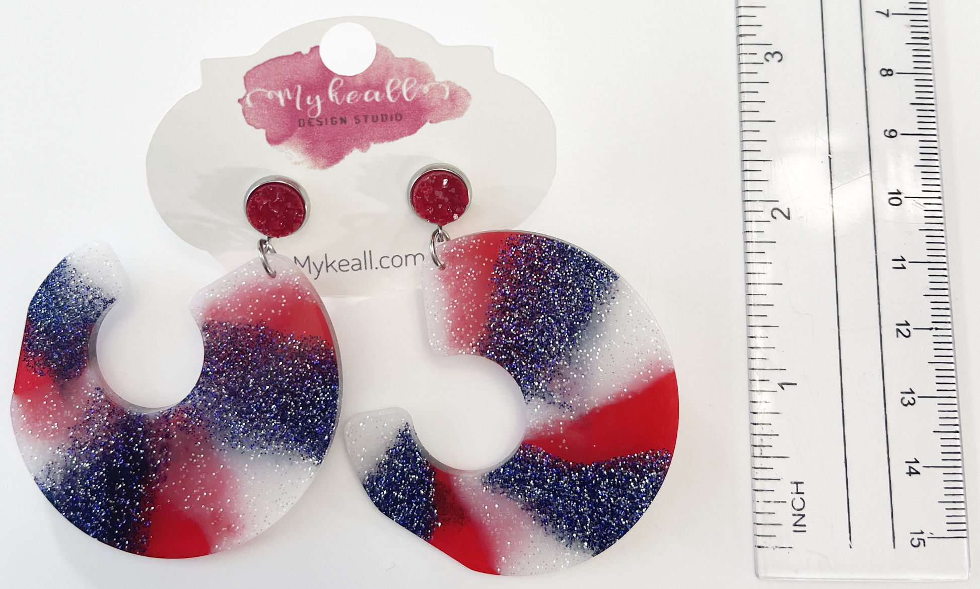 Red white blue dangle earrings - 2.5" length