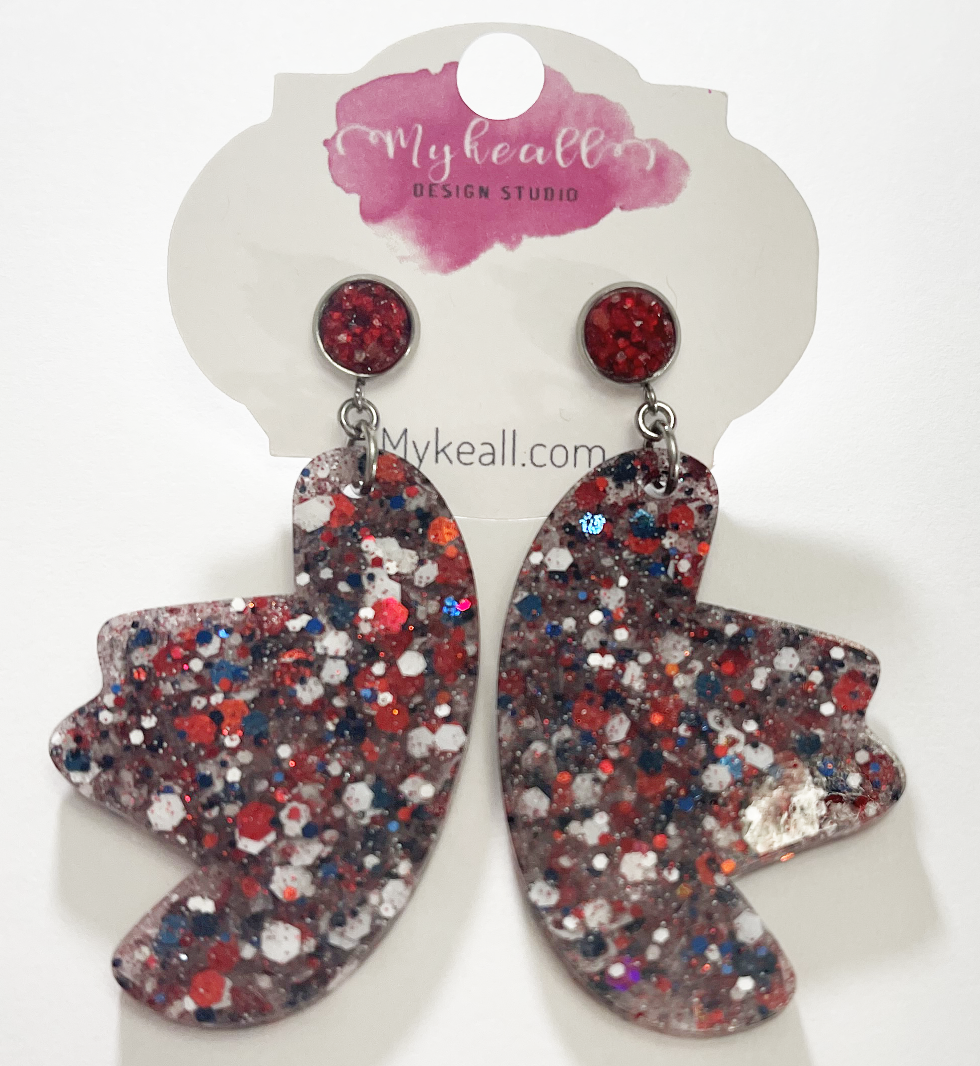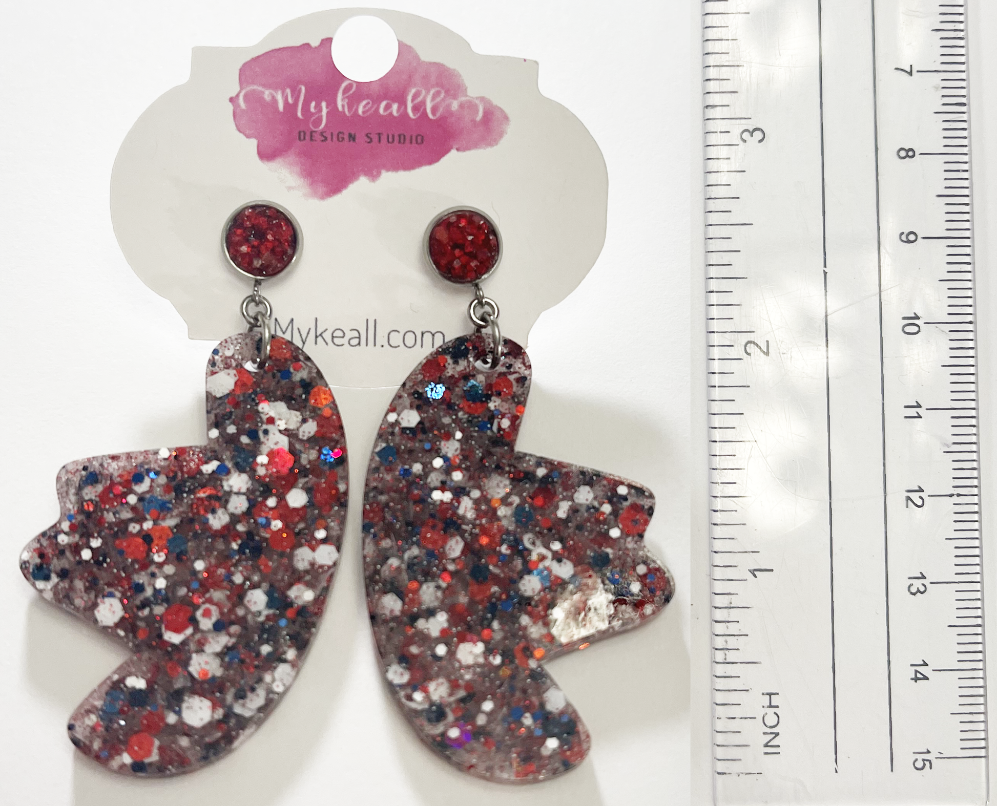 Red white navy glitter hat earrings with red druzy post - 2.5" length