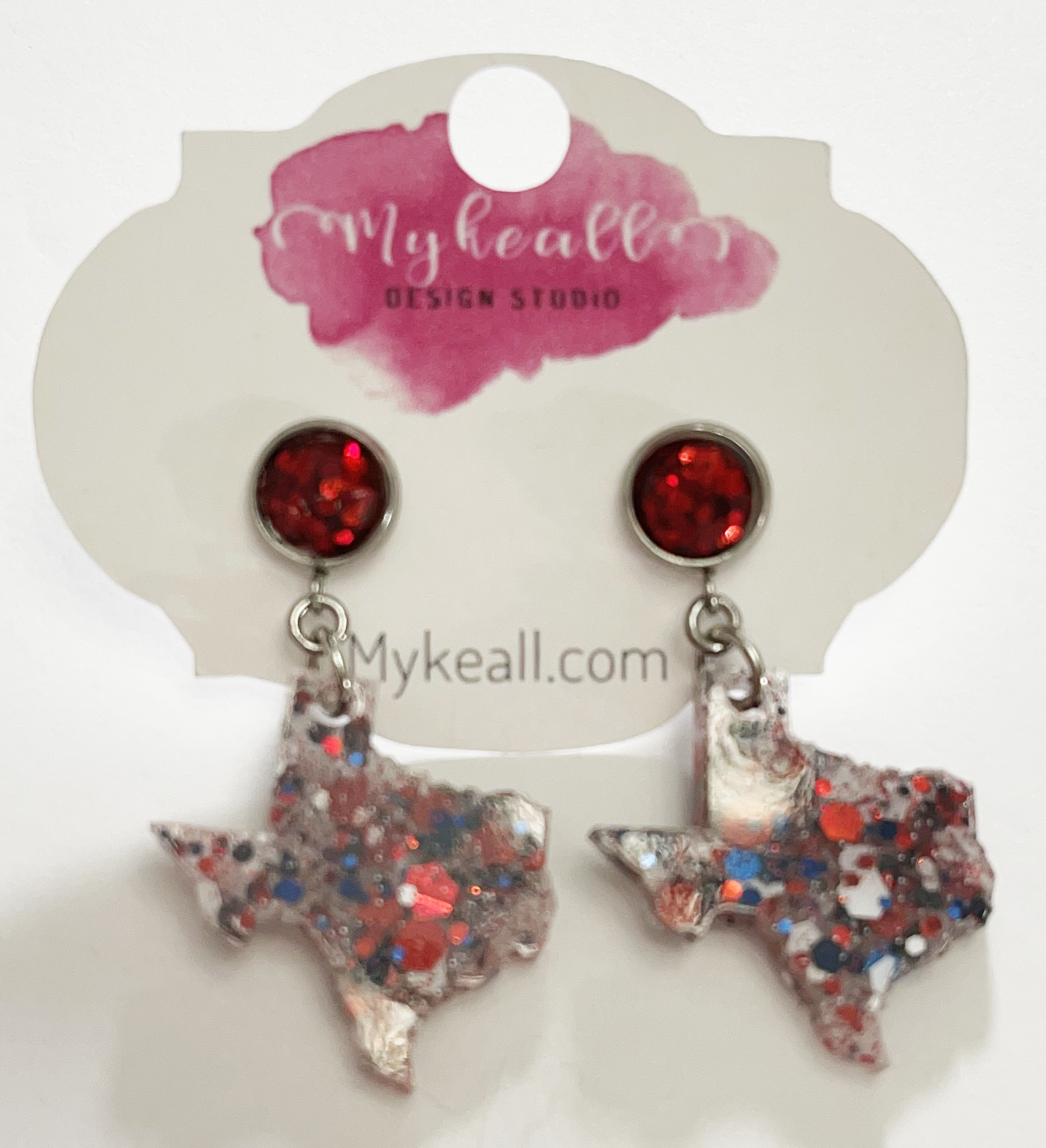 Red white navy glitter Texas earrings with red druzy post - 1.5" length