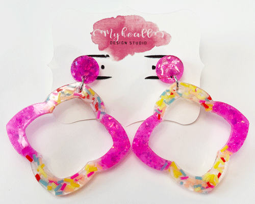 Hand-made epoxy resin earrings with polymer clay sprinkles design!