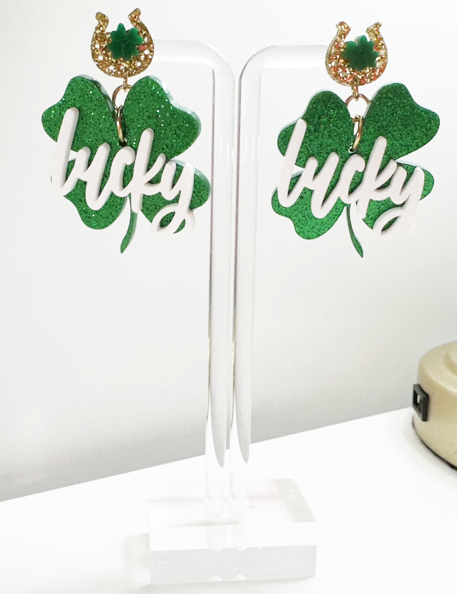 Hand-made resin earrings to bling on St. Patrick's Day!