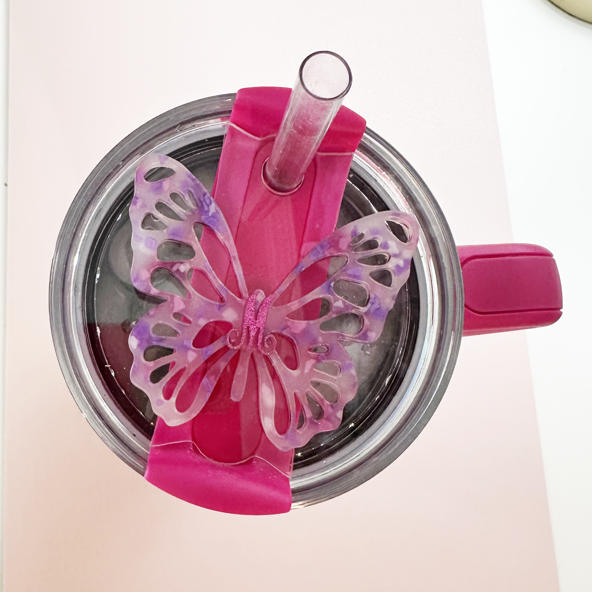 TUMBLER TOPPER TAG - BUTTERFLY-PURPLE FROSTED MIX