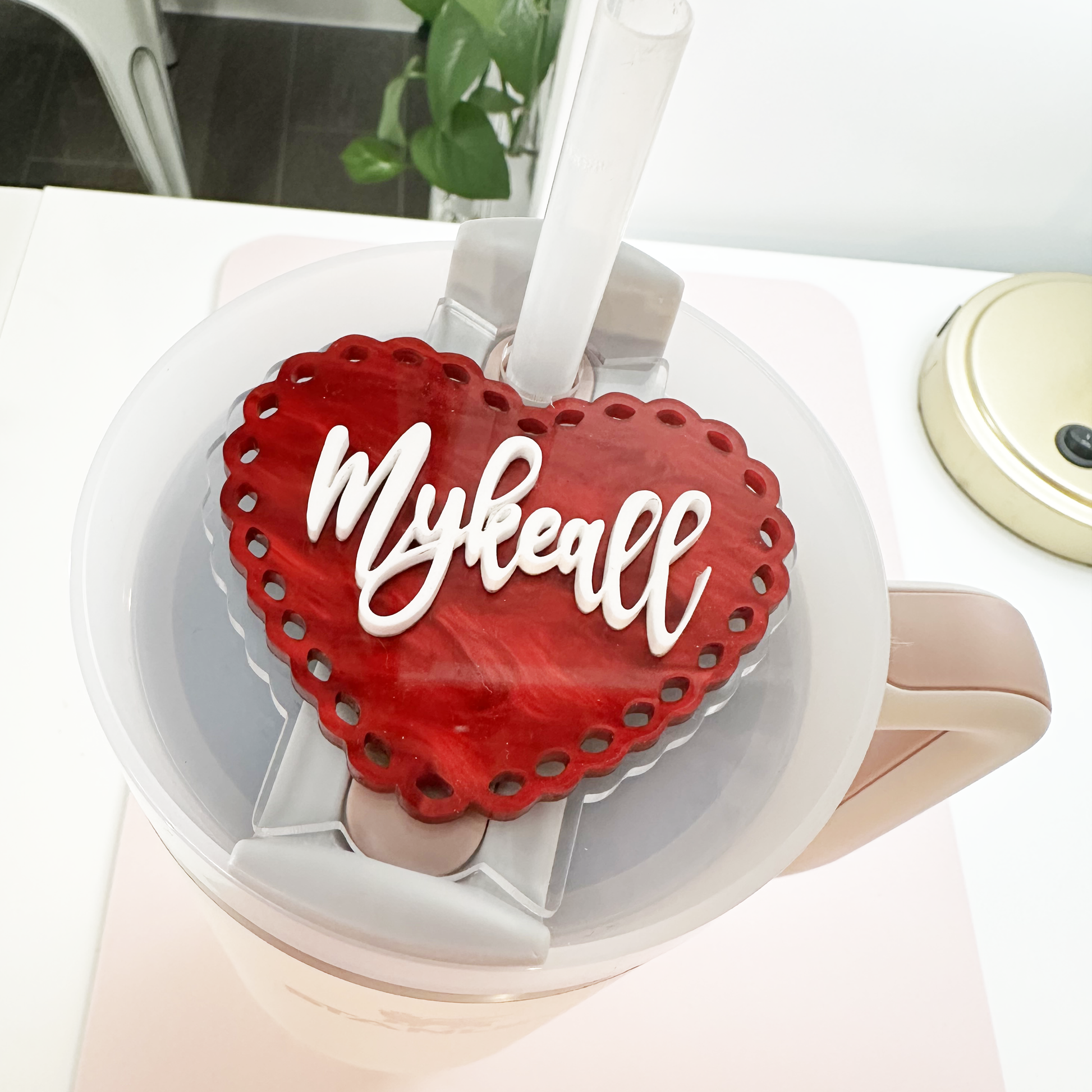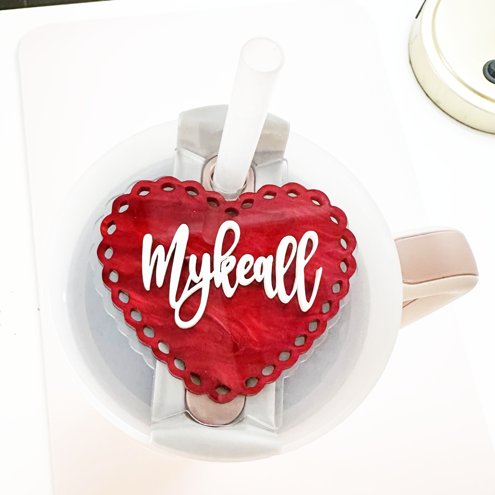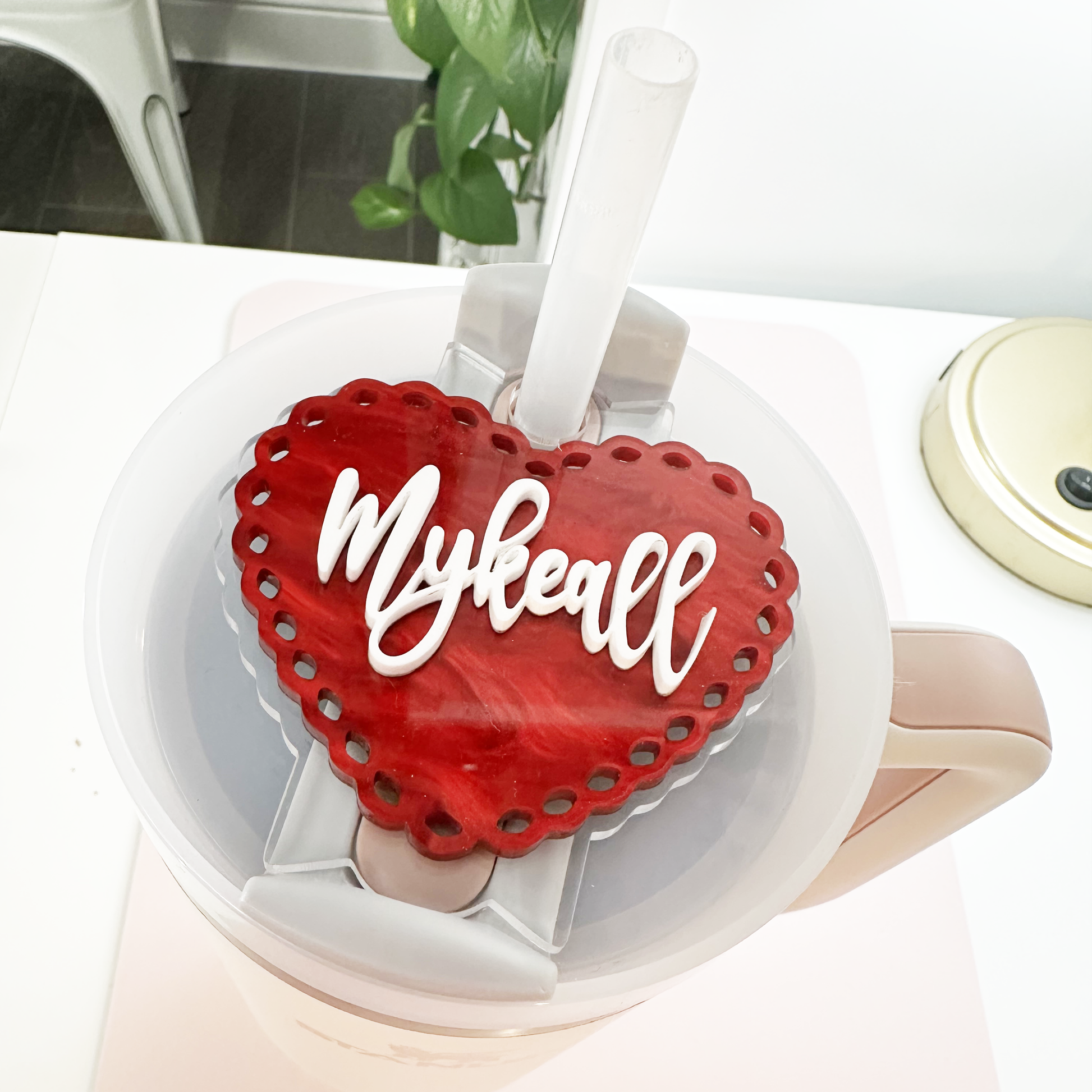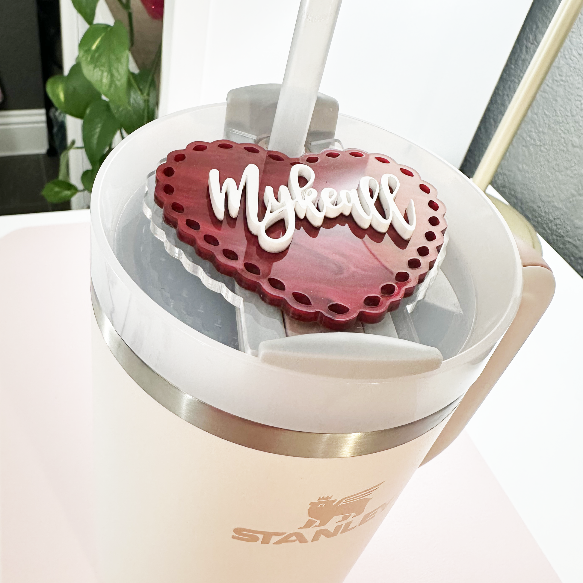 TUMBLER TOPPER TAG - SCALLOPED HEART MARBLE