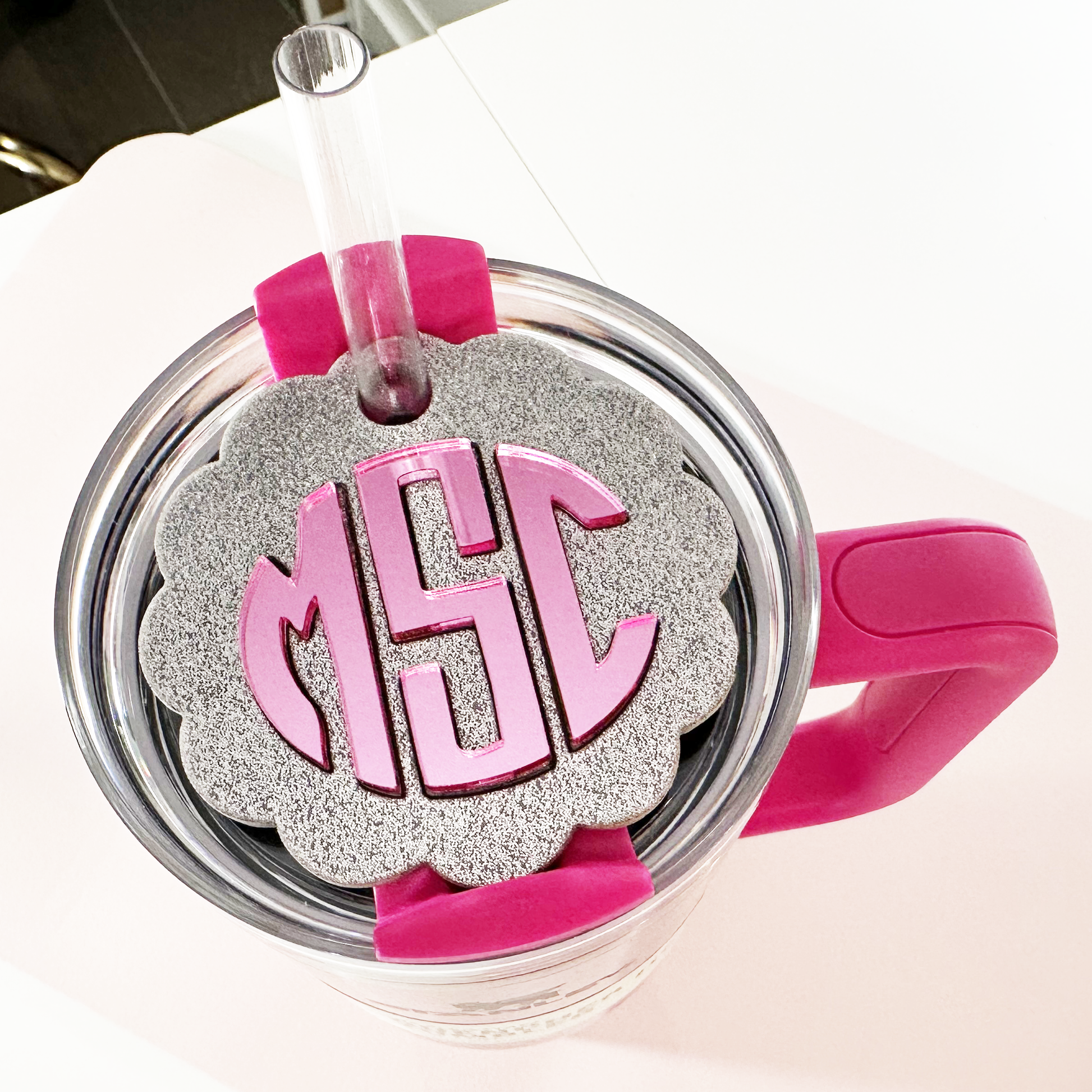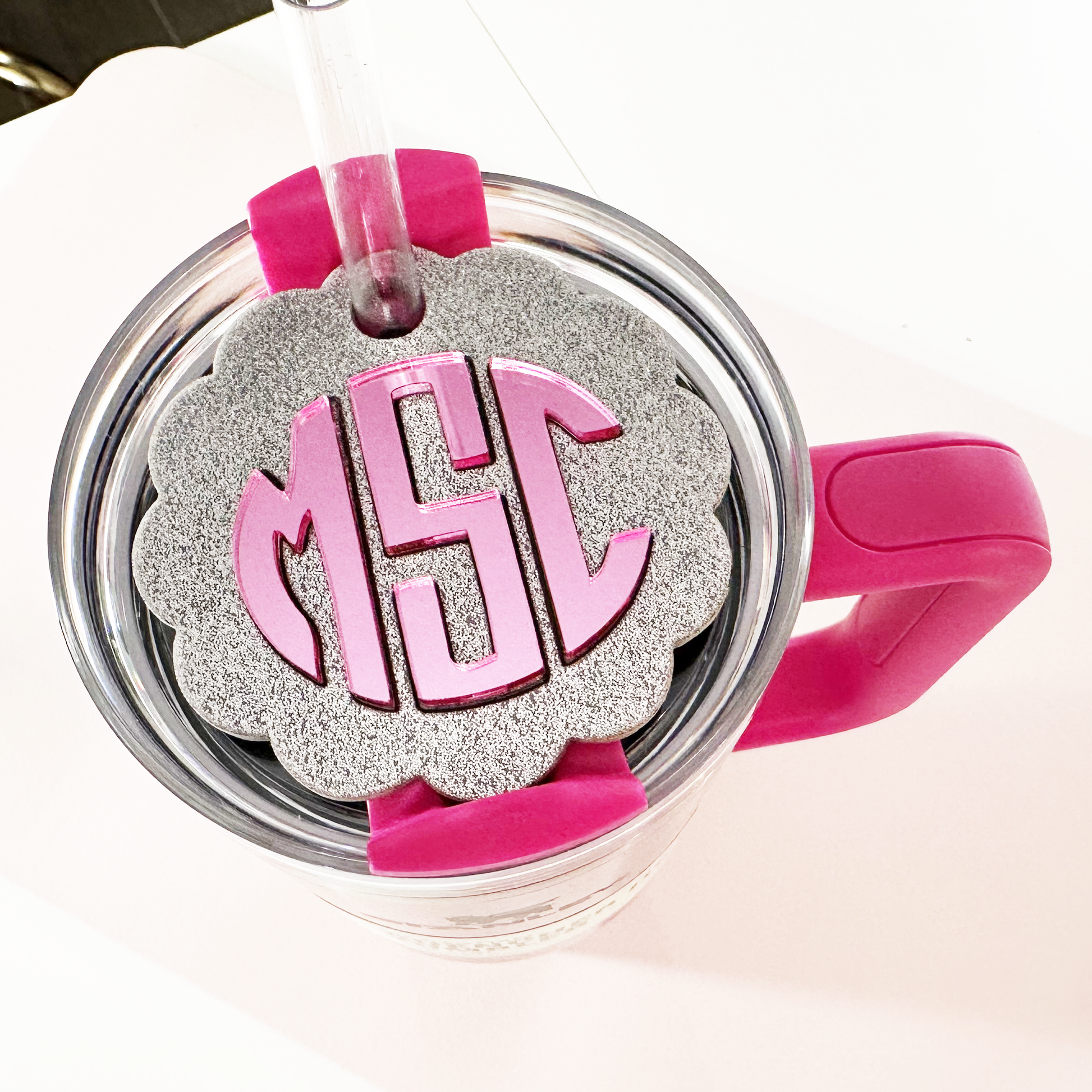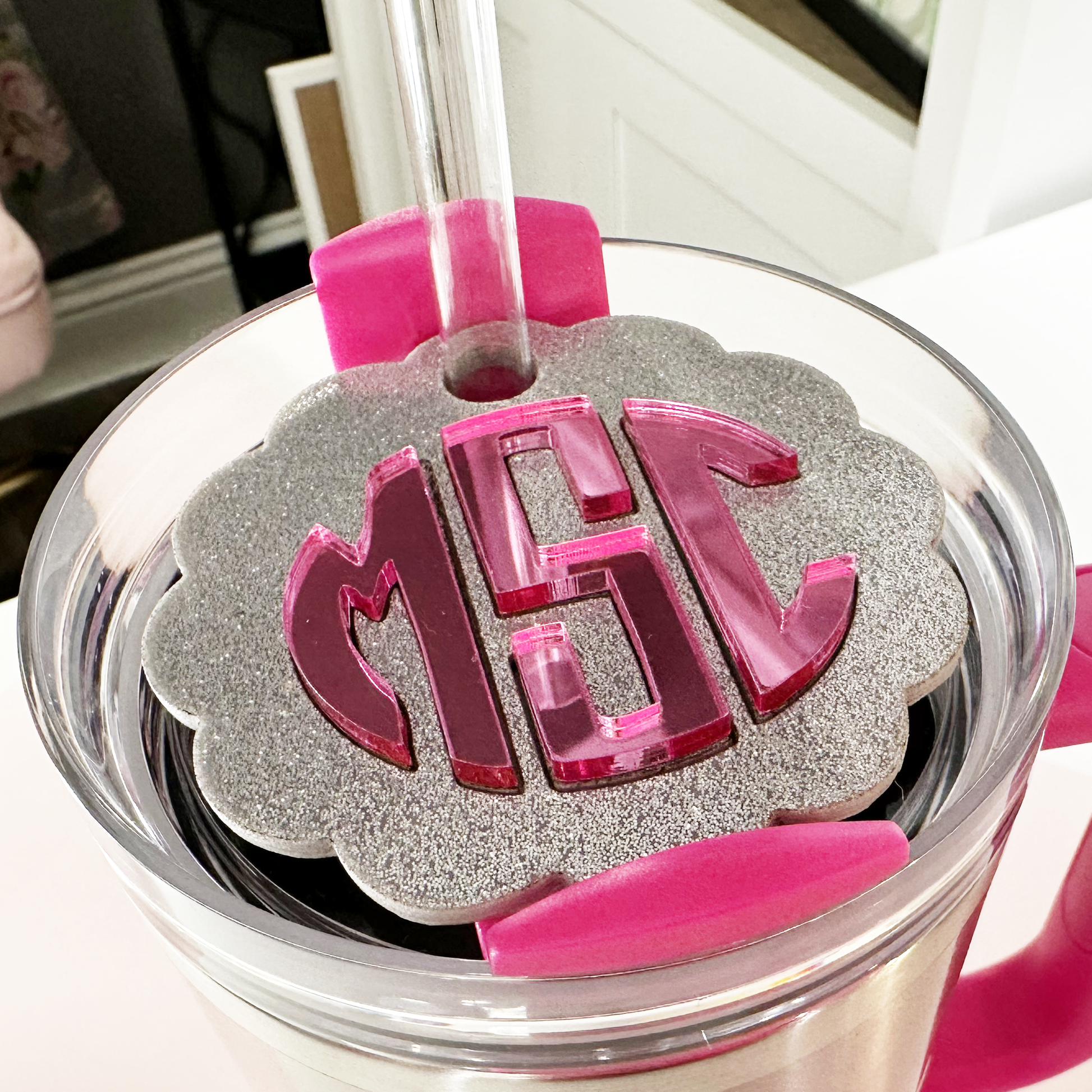 TUMBLER TOPPER - FULL LID - SCALLOPED MONOGRAM - SILVER GLITTER