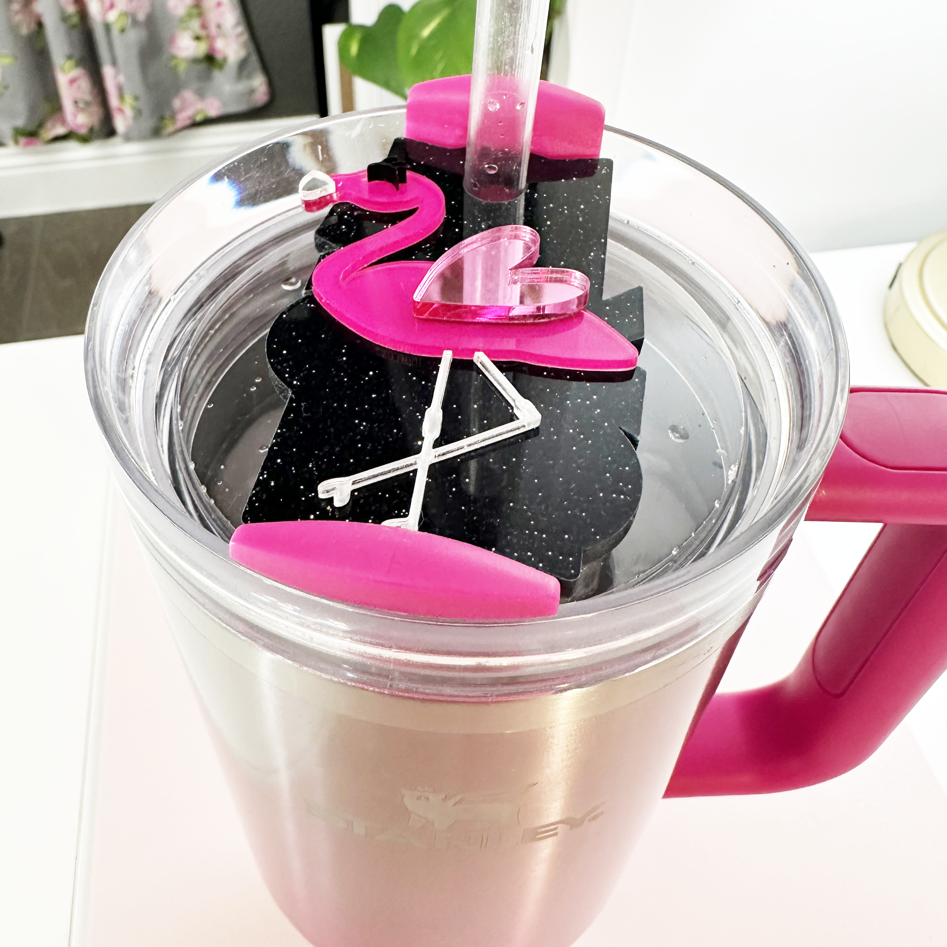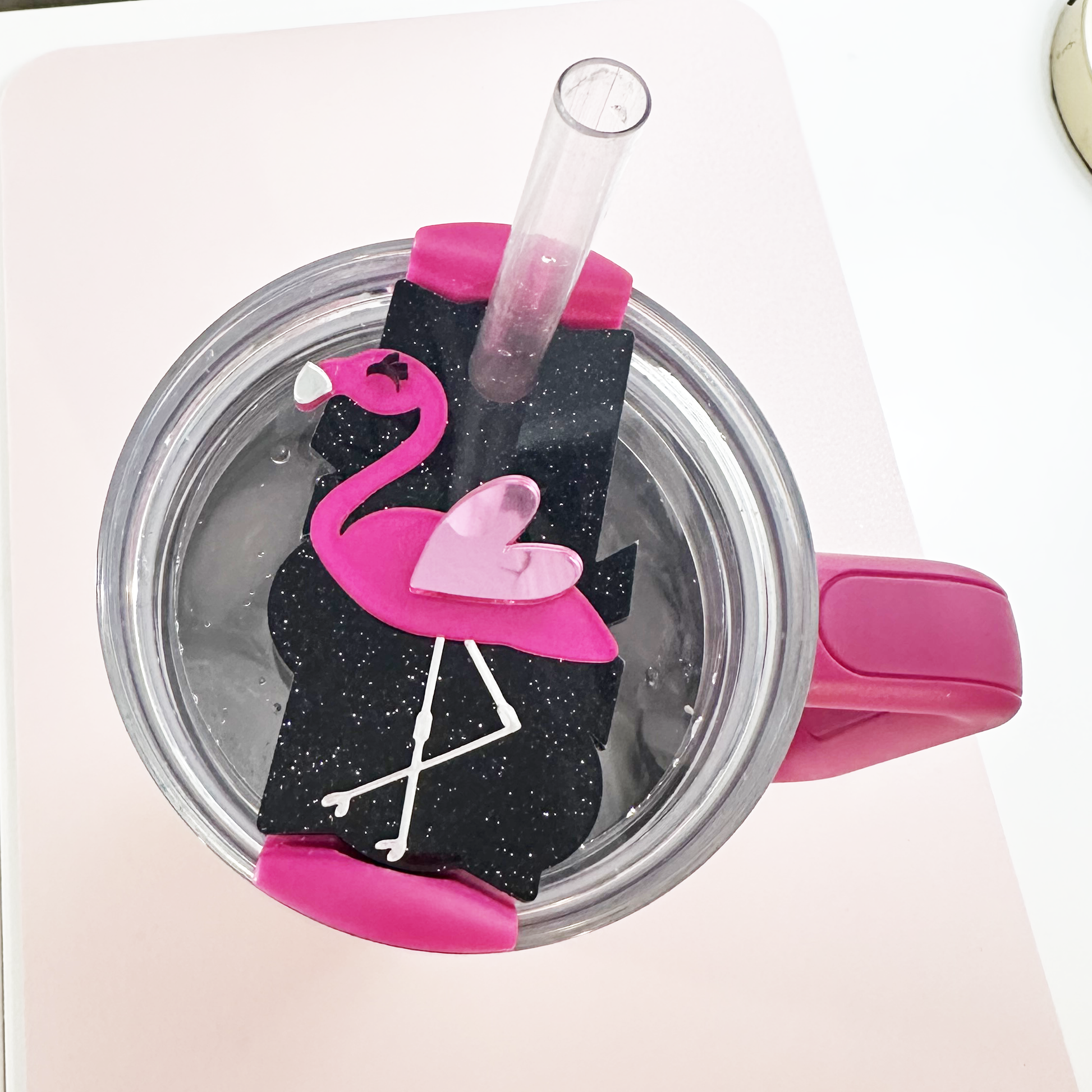 TUMBLER TOPPER TAG - HOT PINK FLAMINGO