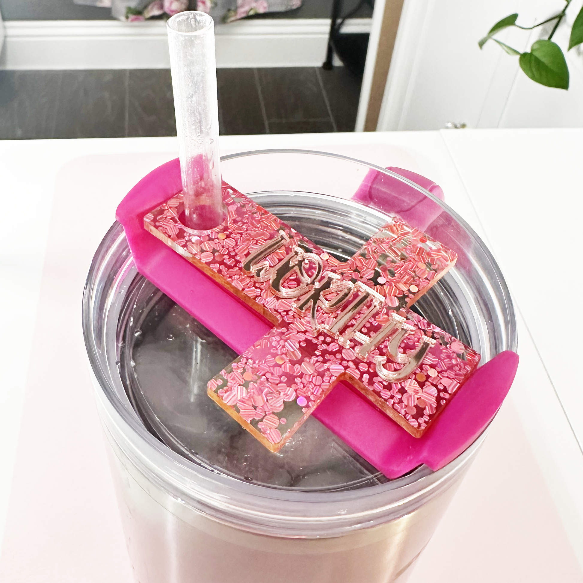 TUMBLER TOPPER TAG - PINK CONFETTI CROSS