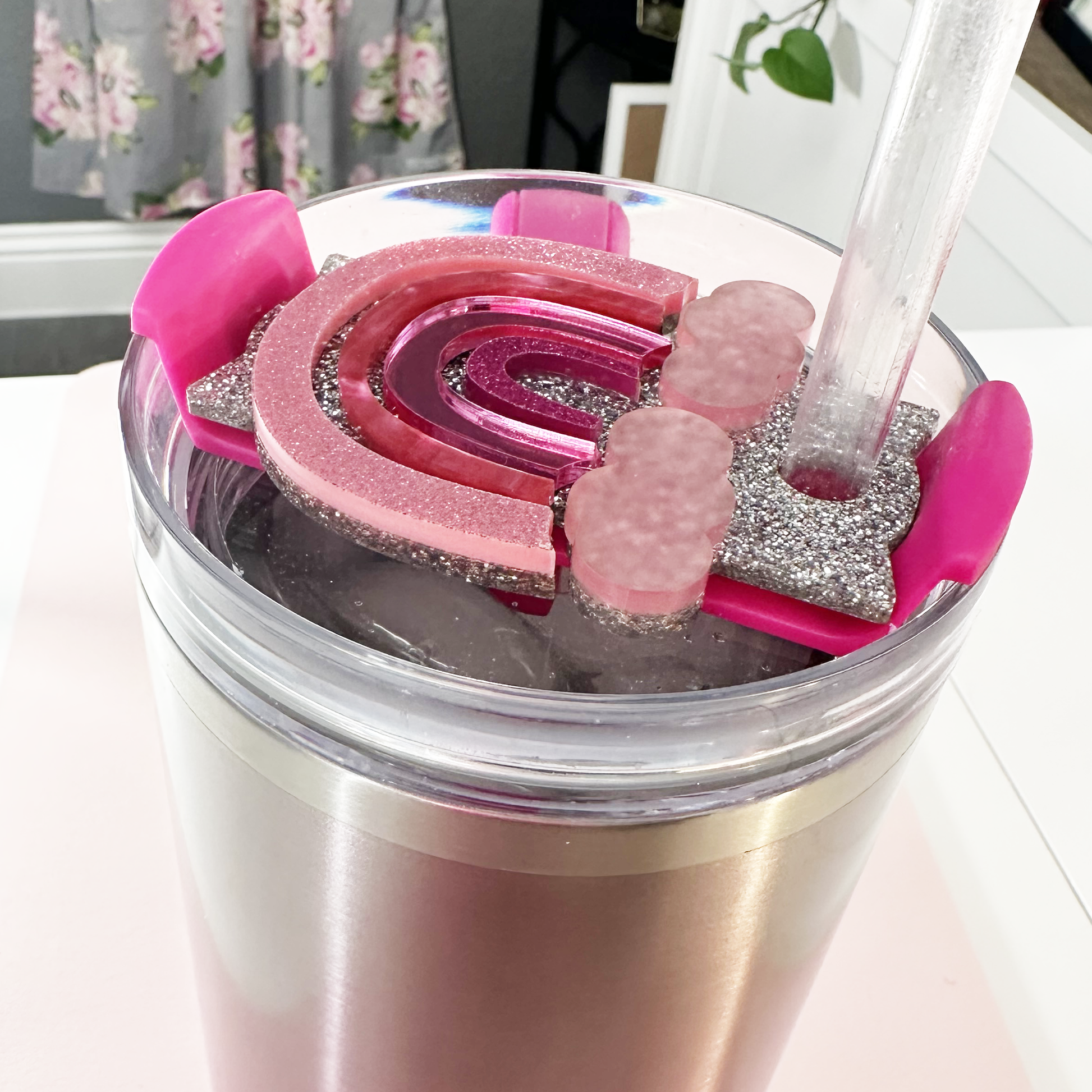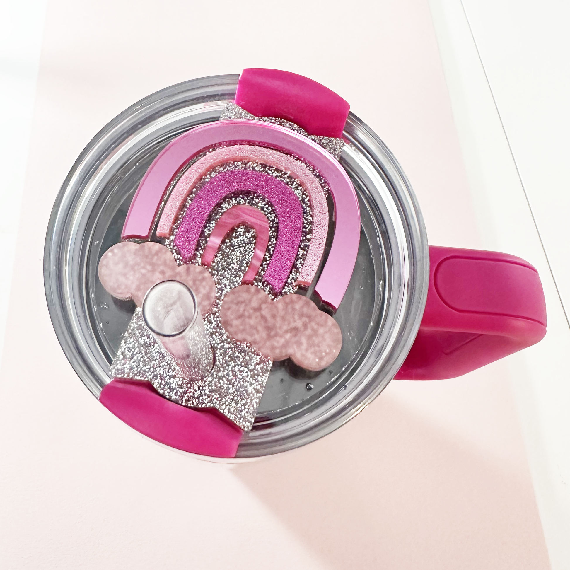TUMBLER TOPPER TAG - PINK OMBRE RAINBOW