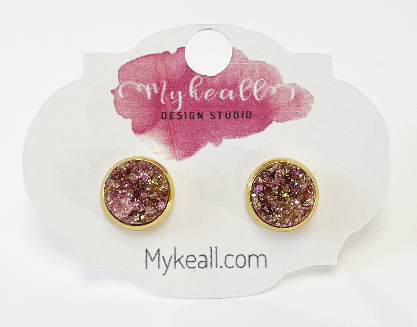 Hand-made resin 10mm rose gold druzy stud earrings.