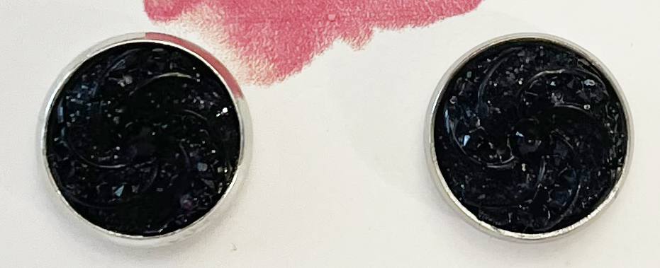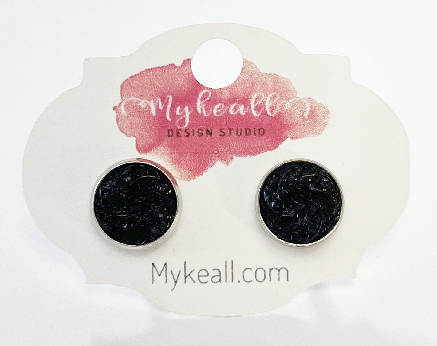 Hand-made resin 10mm black druzy swirl stud earrings.