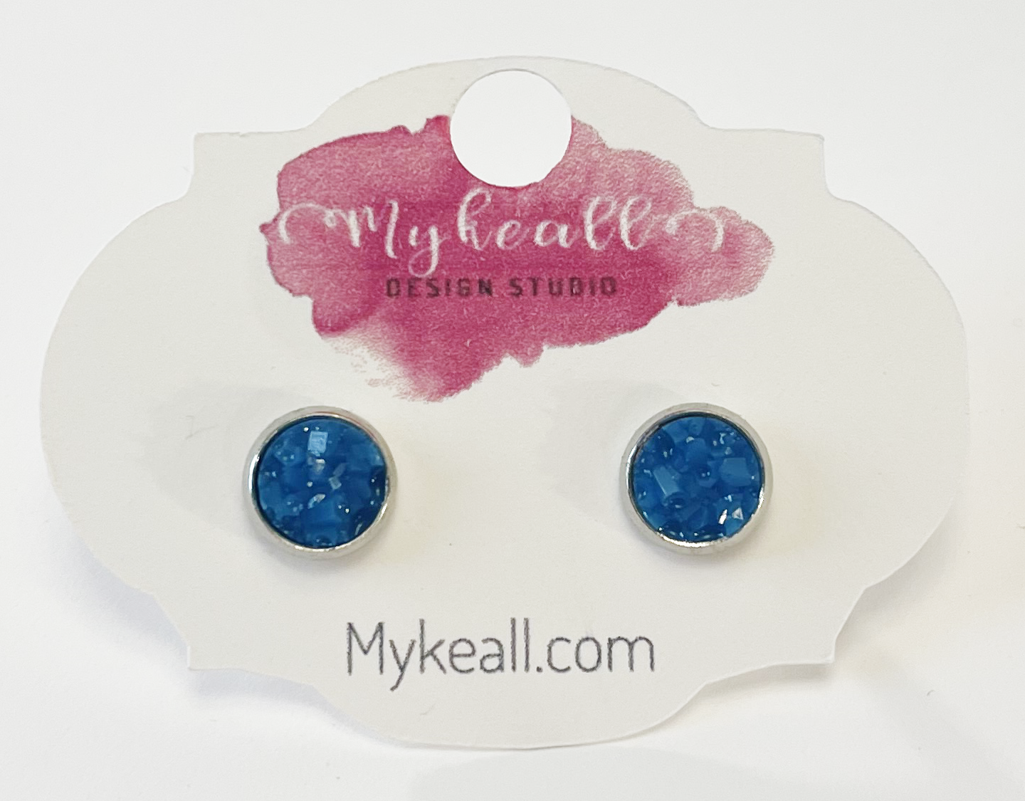 Hand-made resin 8mm blue druzy stud earrings.