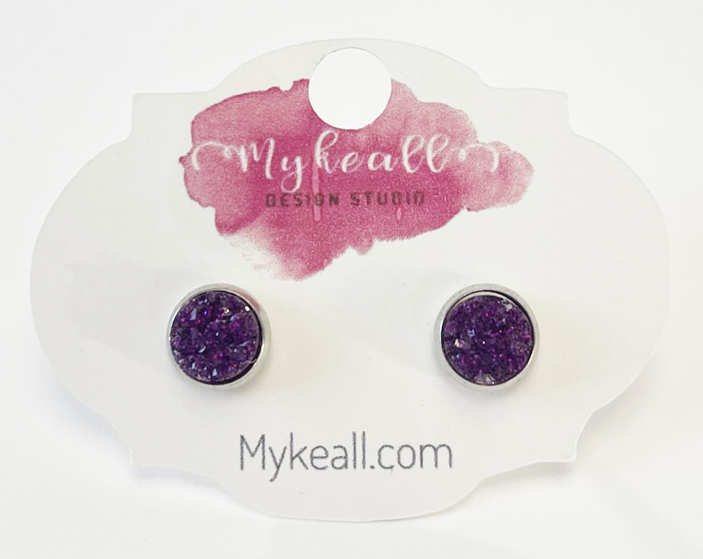 Hand-made resin 8mm purple druzy stud earrings.