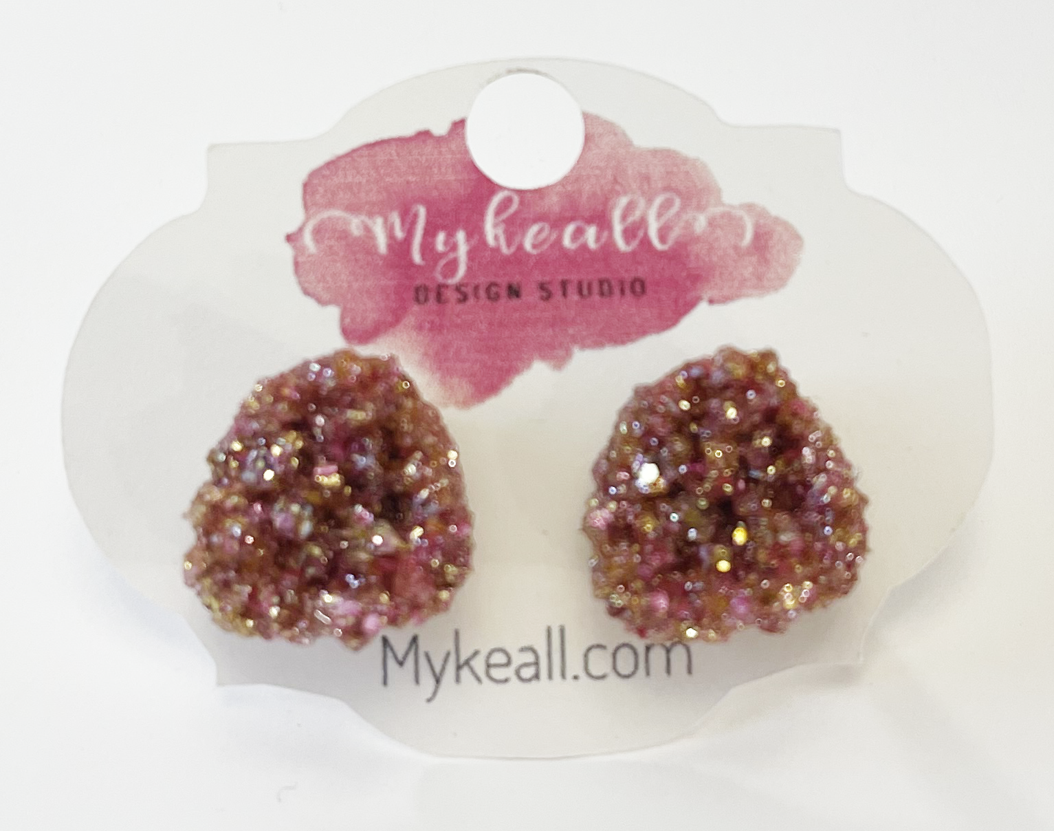 Hand-made resin rose gold druzy stud earrings.
