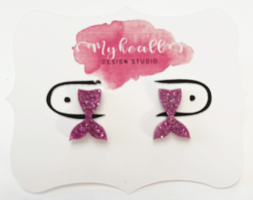 Hand-made resin rose pink glitter mermaid tails stud earrings.