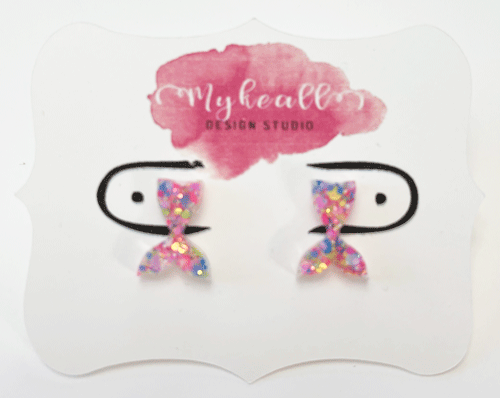 Hand-made resin rainbow glitter mermaid tails stud earrings.