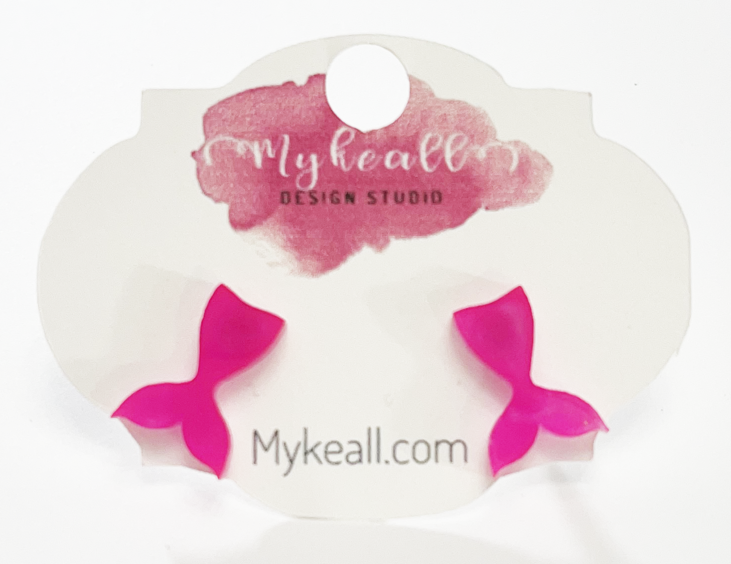 Hand-made resin pink mermaid tails stud earrings.