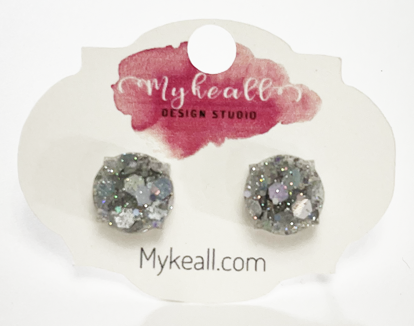 Hand-made resin silver chunky glitter stud earrings.