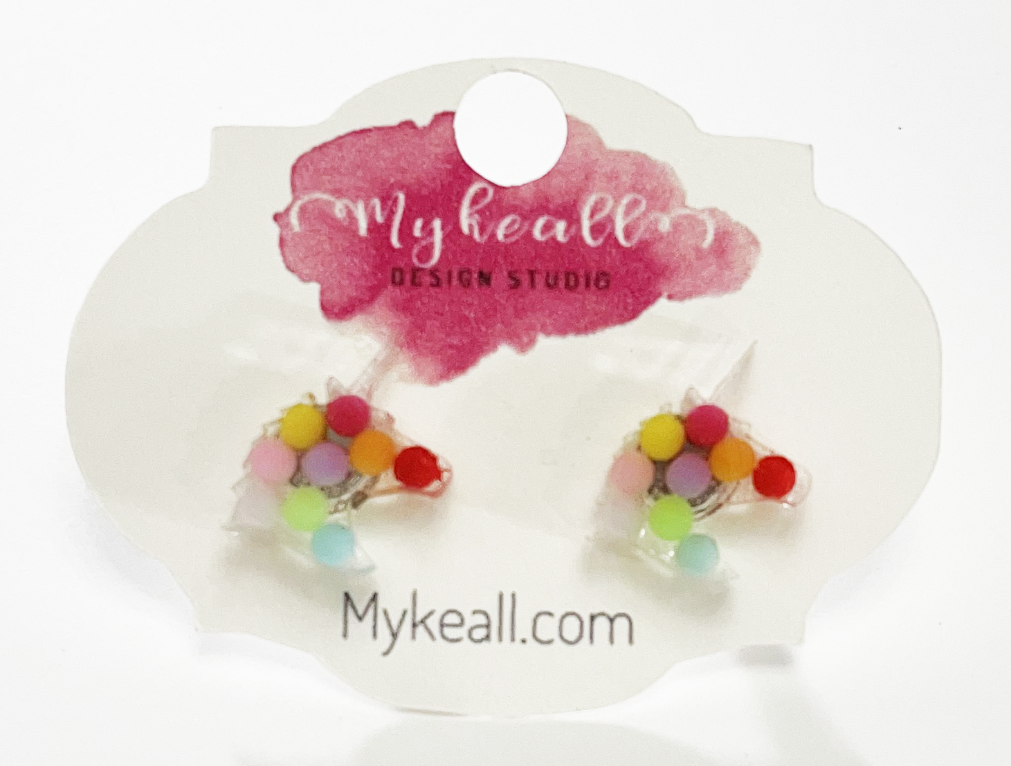 Hand-made resin rainbow dots unicorn stud earrings.