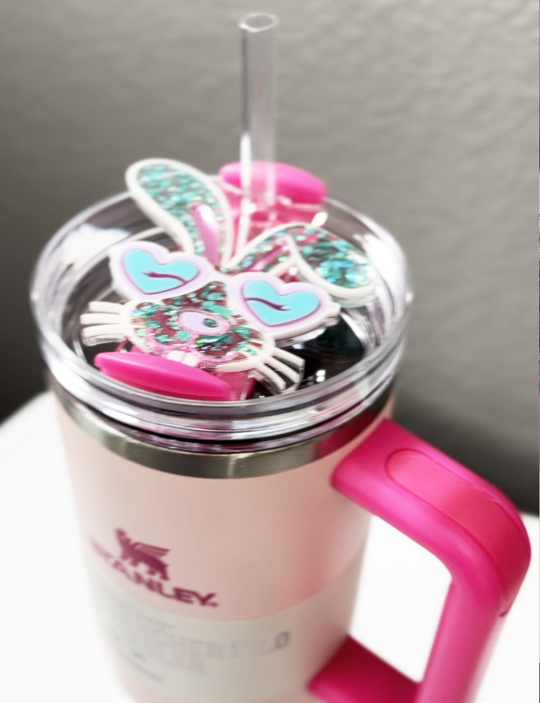 TUMBLER TOPPER - BUNNY GLASSES-PINK TEAL PURPLE