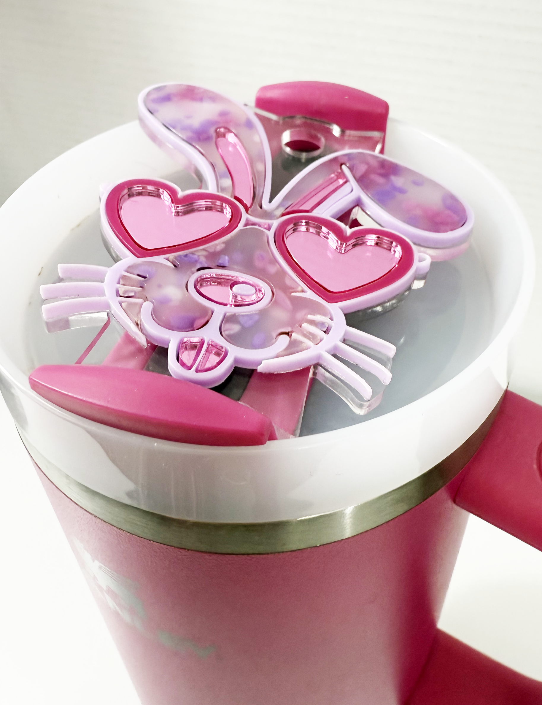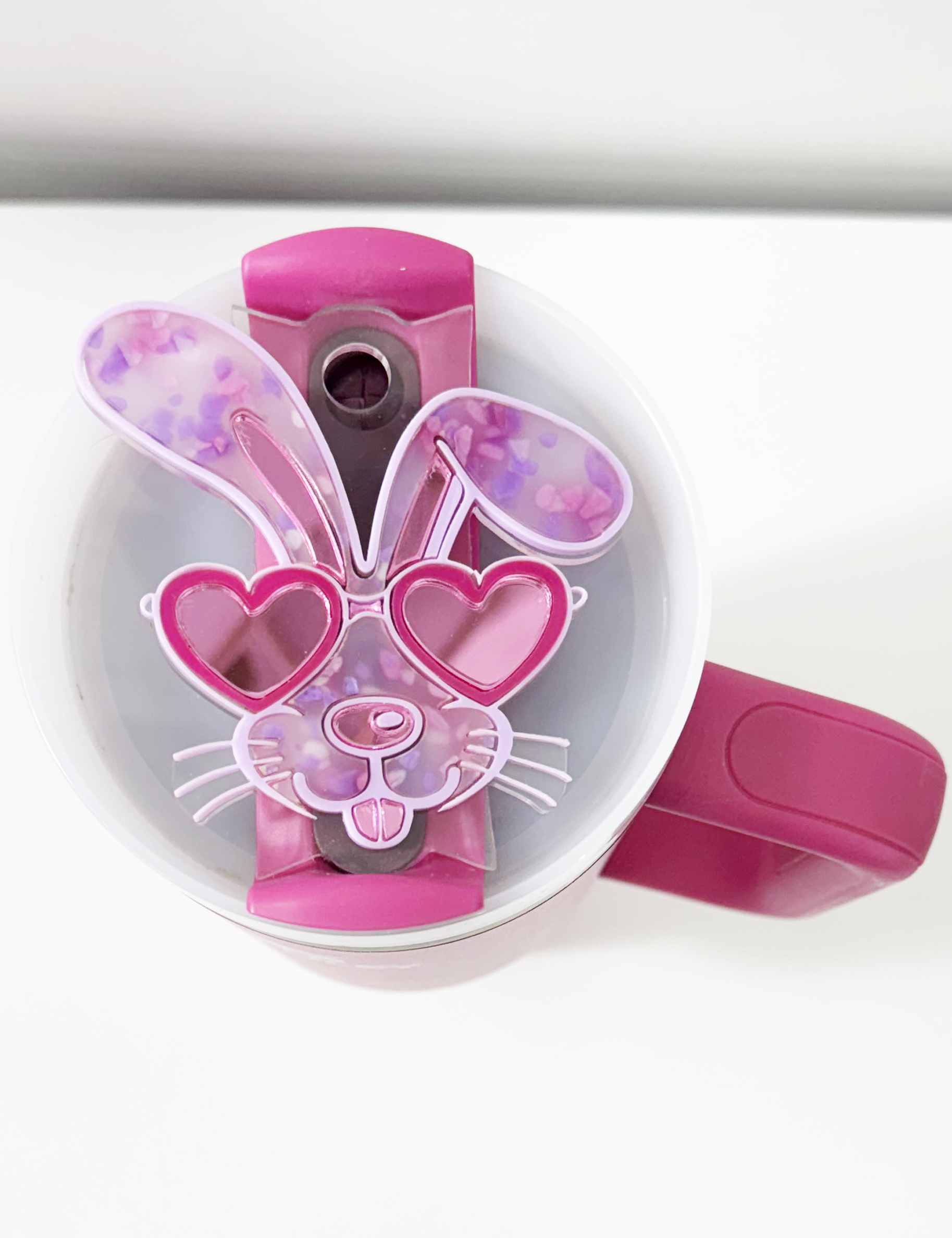 TUMBLER TOPPER - BUNNY GLASSES-LAVENDER PINK