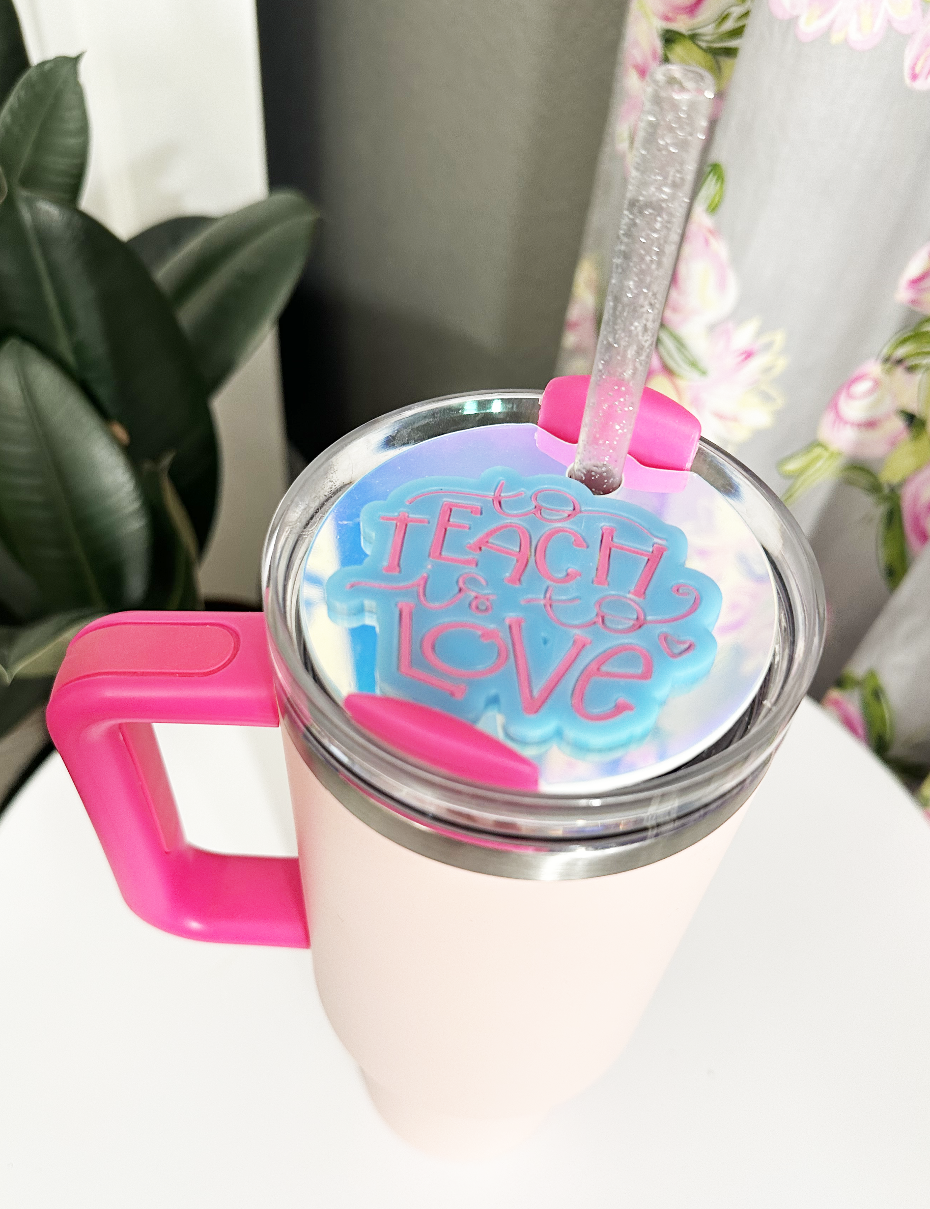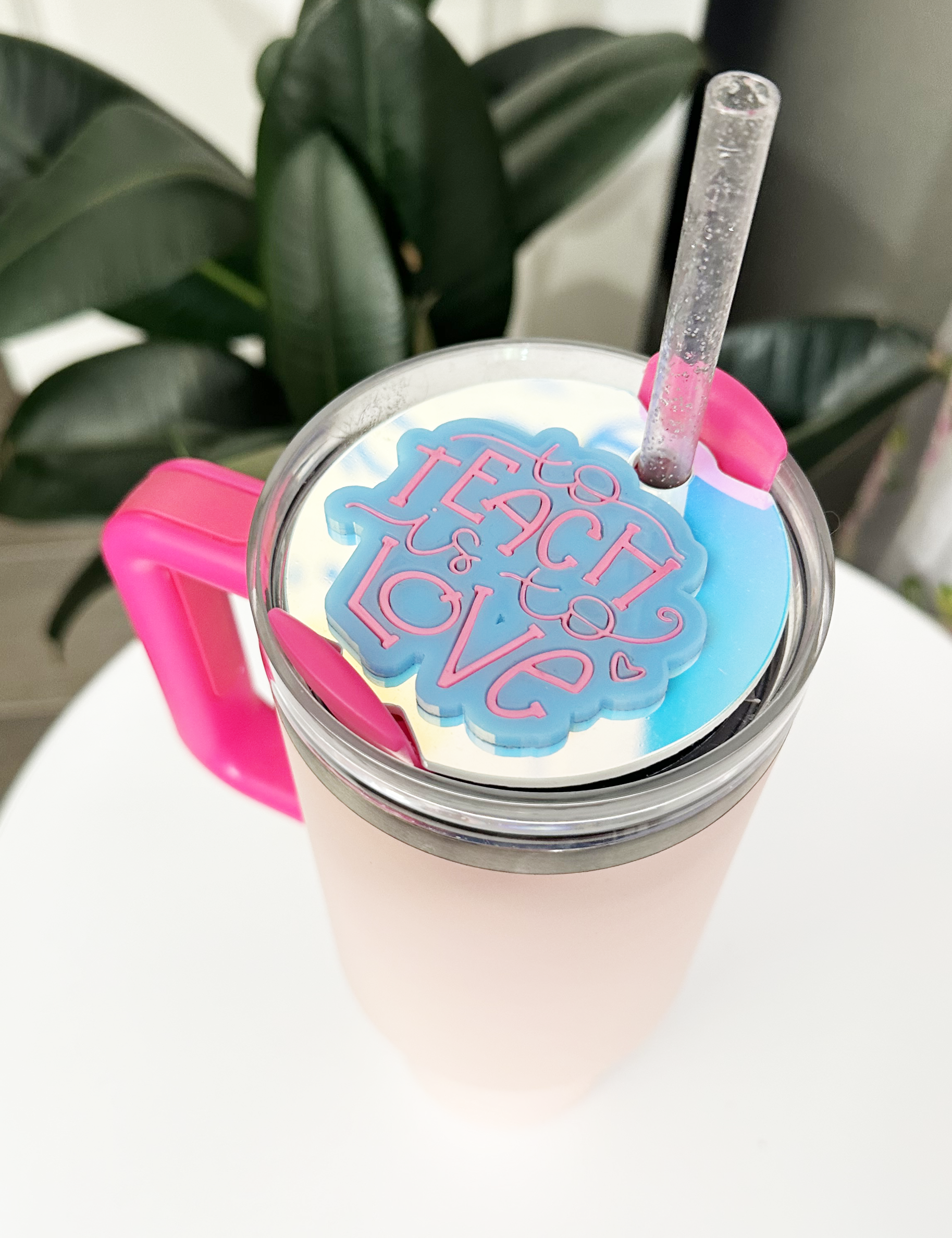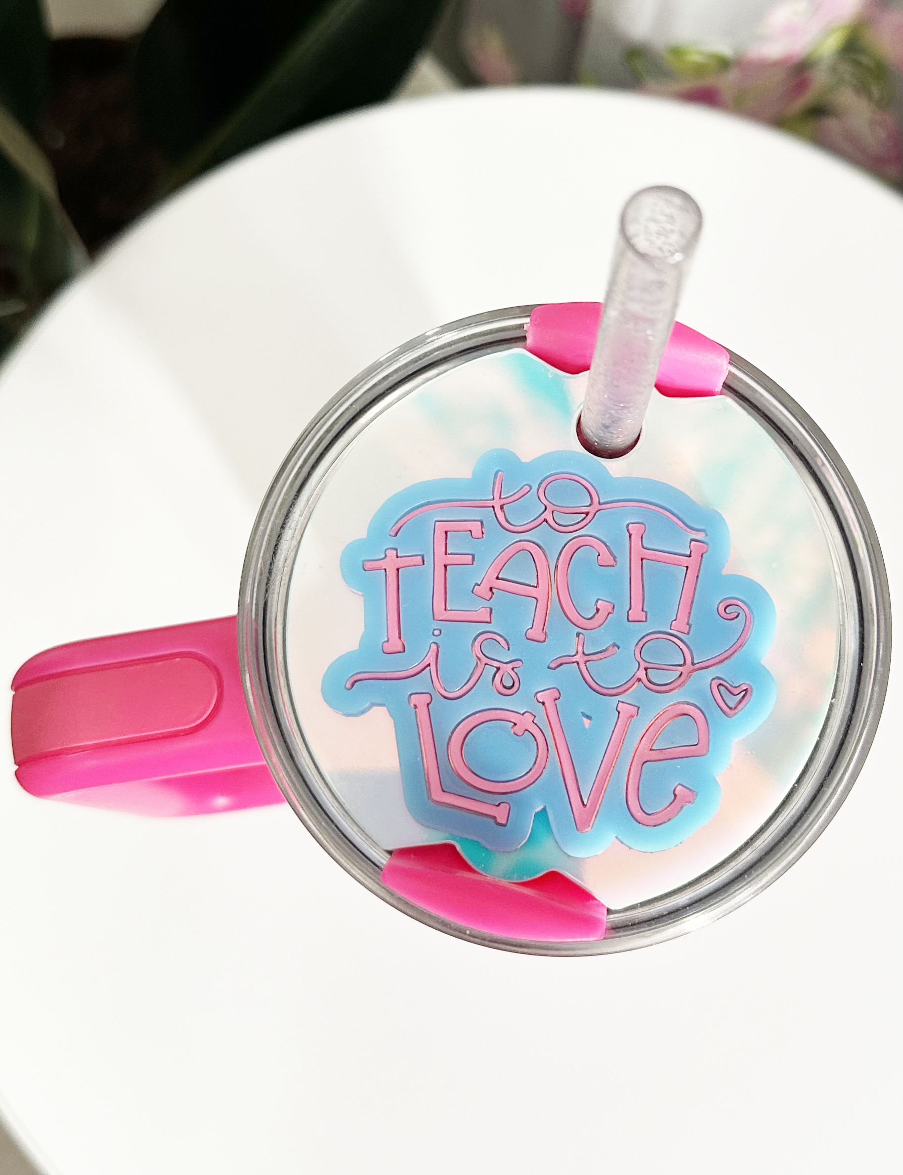 TUMBLER TOPPER - FULL LID - TO TEACH IS TO LOVE - HOLOGRAPHIC